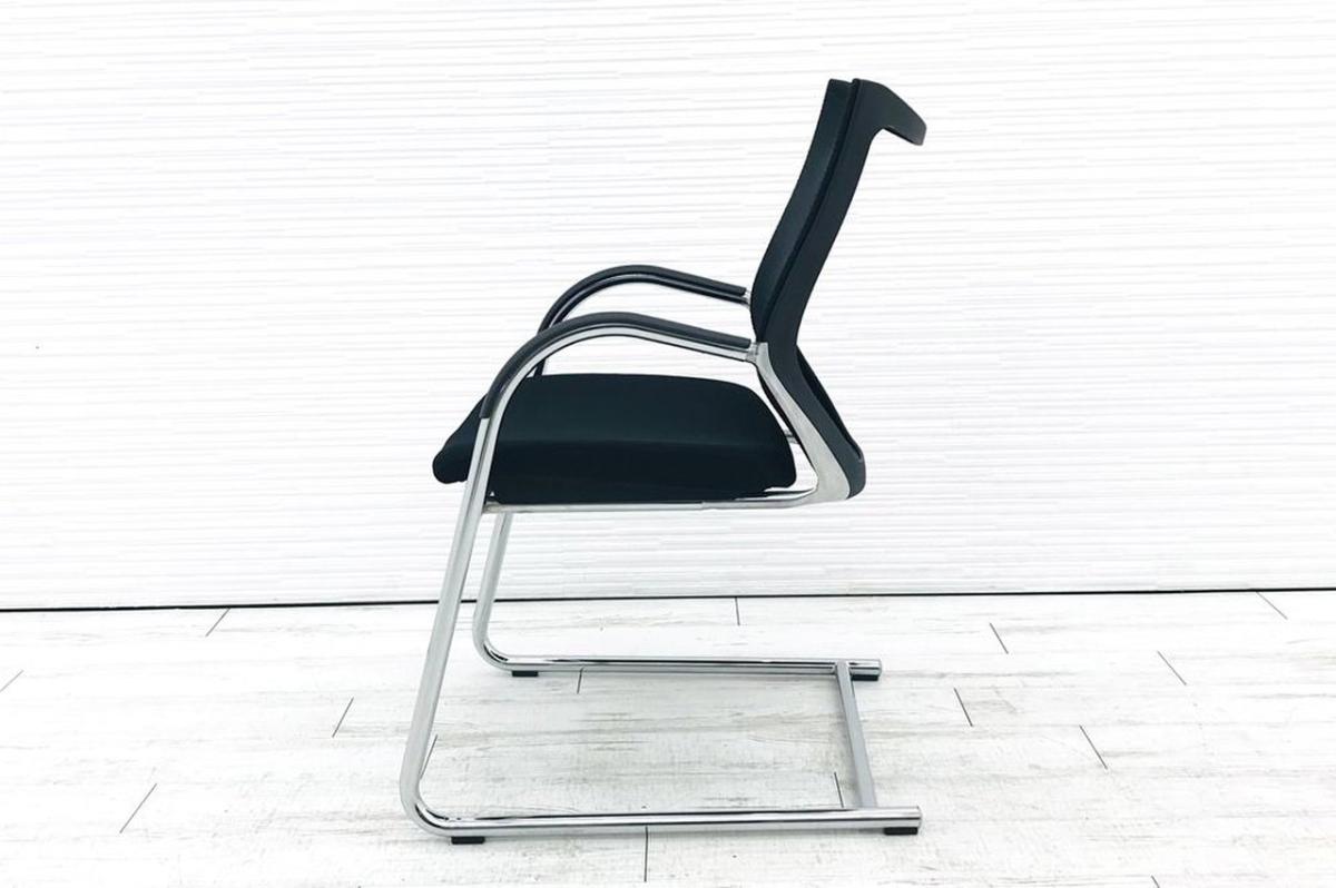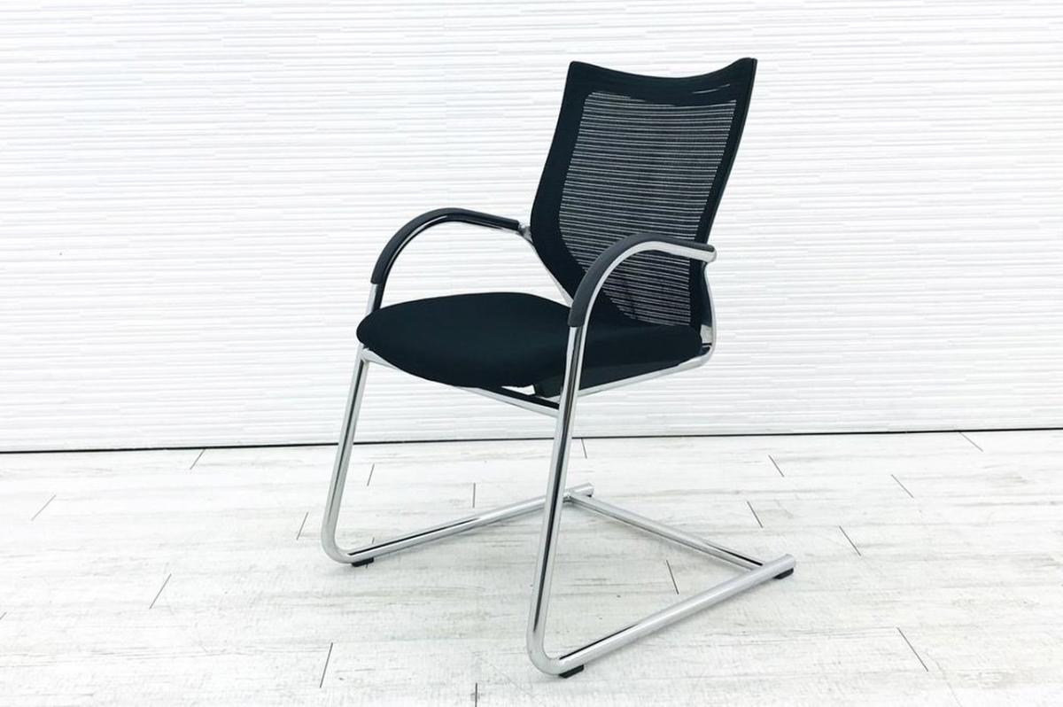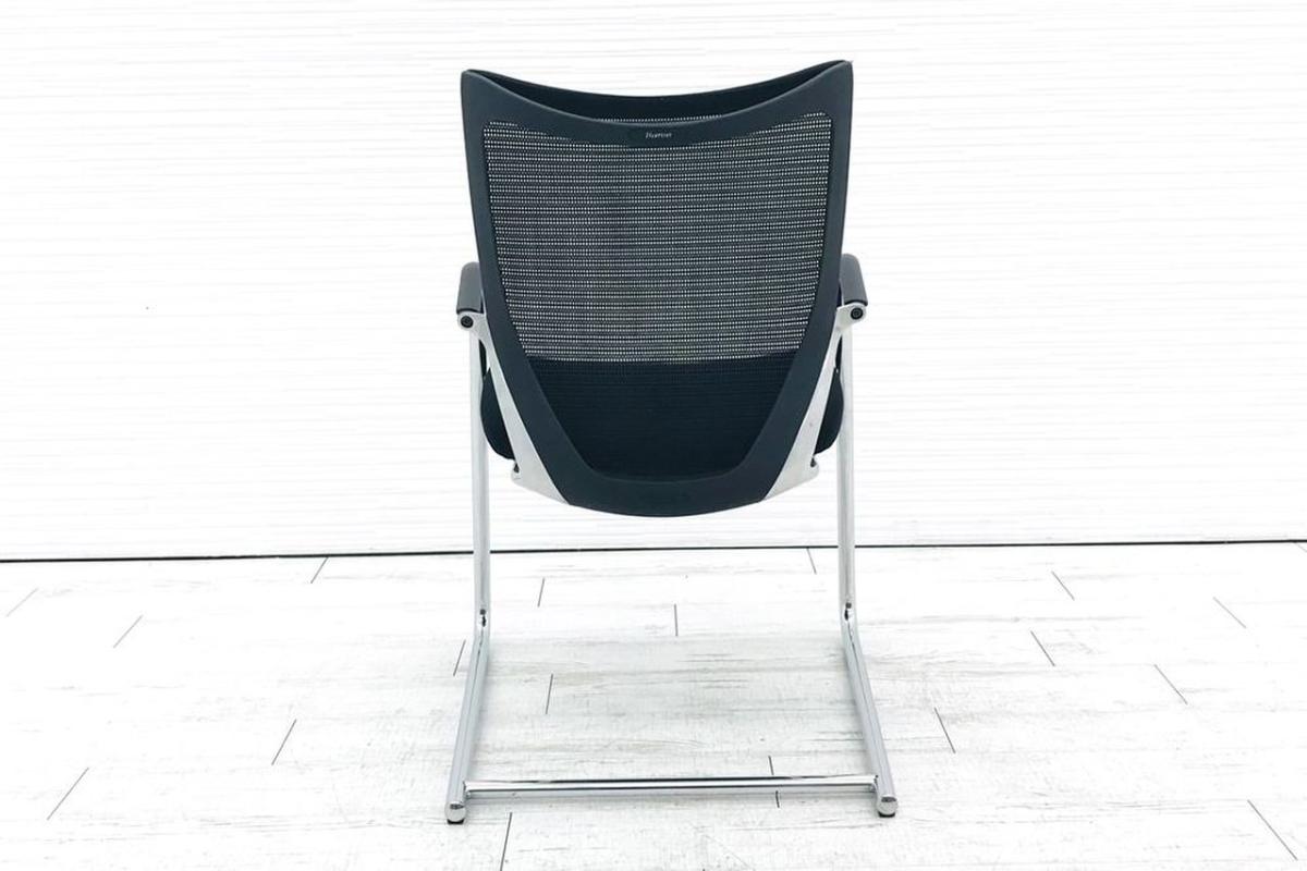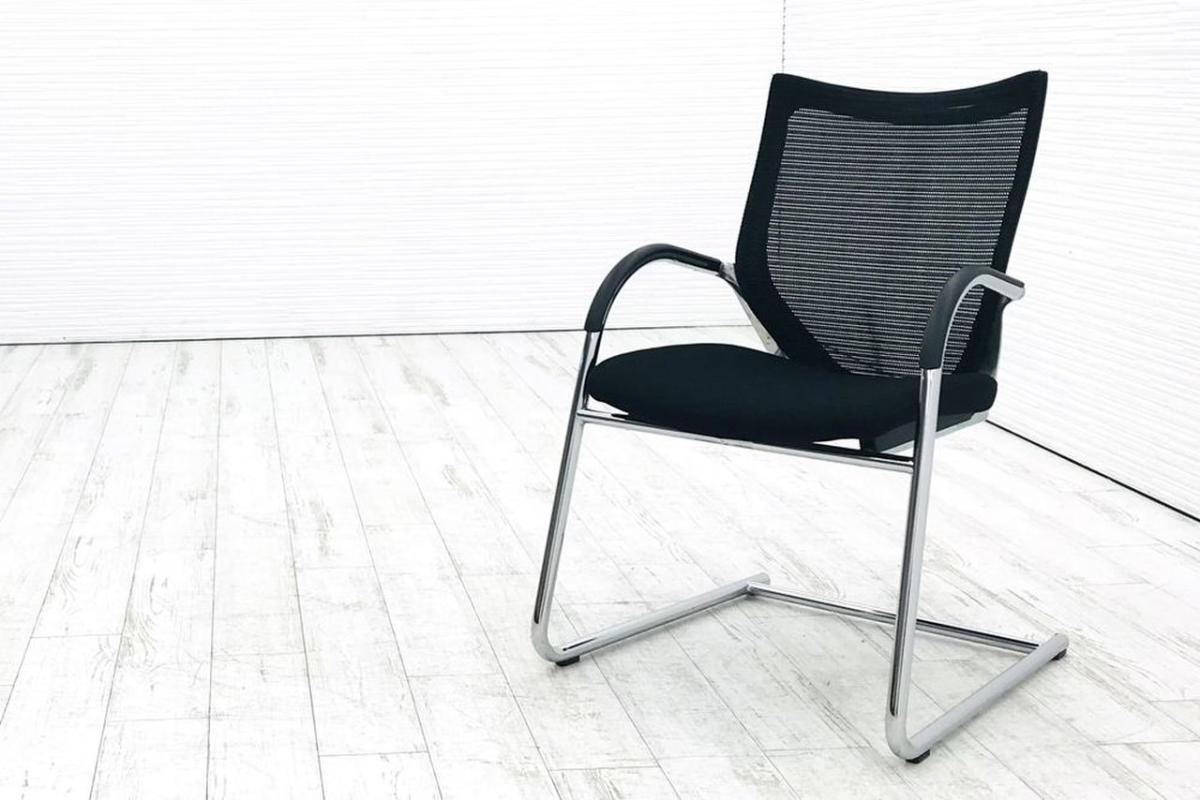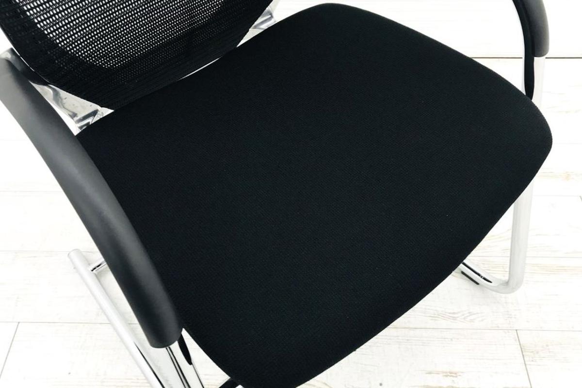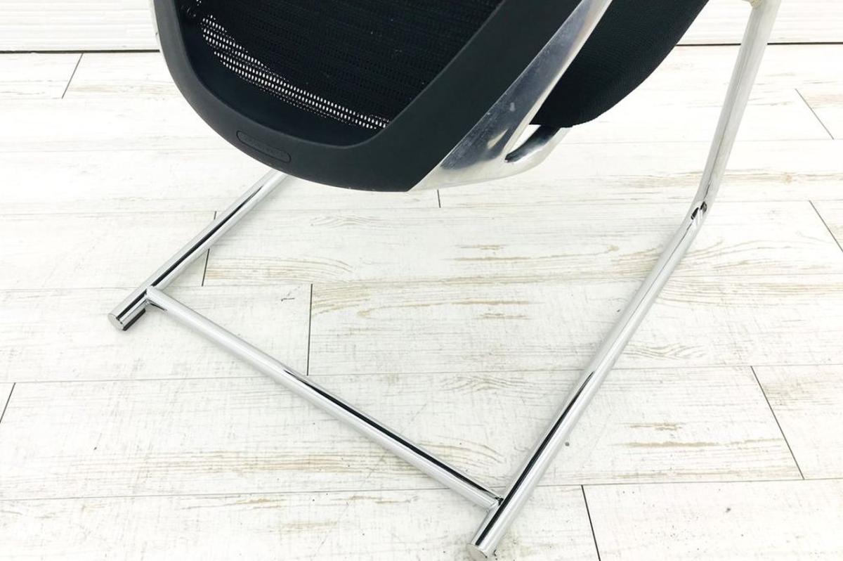 【在庫入替セール】オカムラ バロン ゲストチェア(ミーティングチェア) 背メッシュ×座クッション カンチレバー脚 ブラック×クロームメッキ