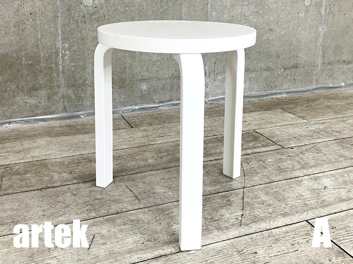 A)artek/アルテック スツール60 アルヴァ・アールト 北欧 フィンランド 3本足 ホワイトラッカー- デザイナーズ家具センター