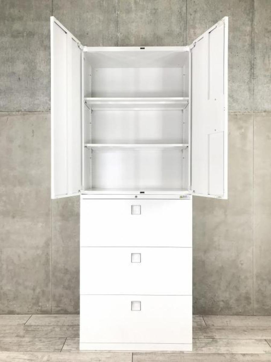 ※取っ手に日焼け有 使い勝手抜群!横幅がスリムな観音開き+引出タイプの書庫セットが入荷!書類・備品整理に是非!幅800mm奥行き450mmタイプ■オカムラ/レクトライン/ネオホワイト在庫がある店舗一覧