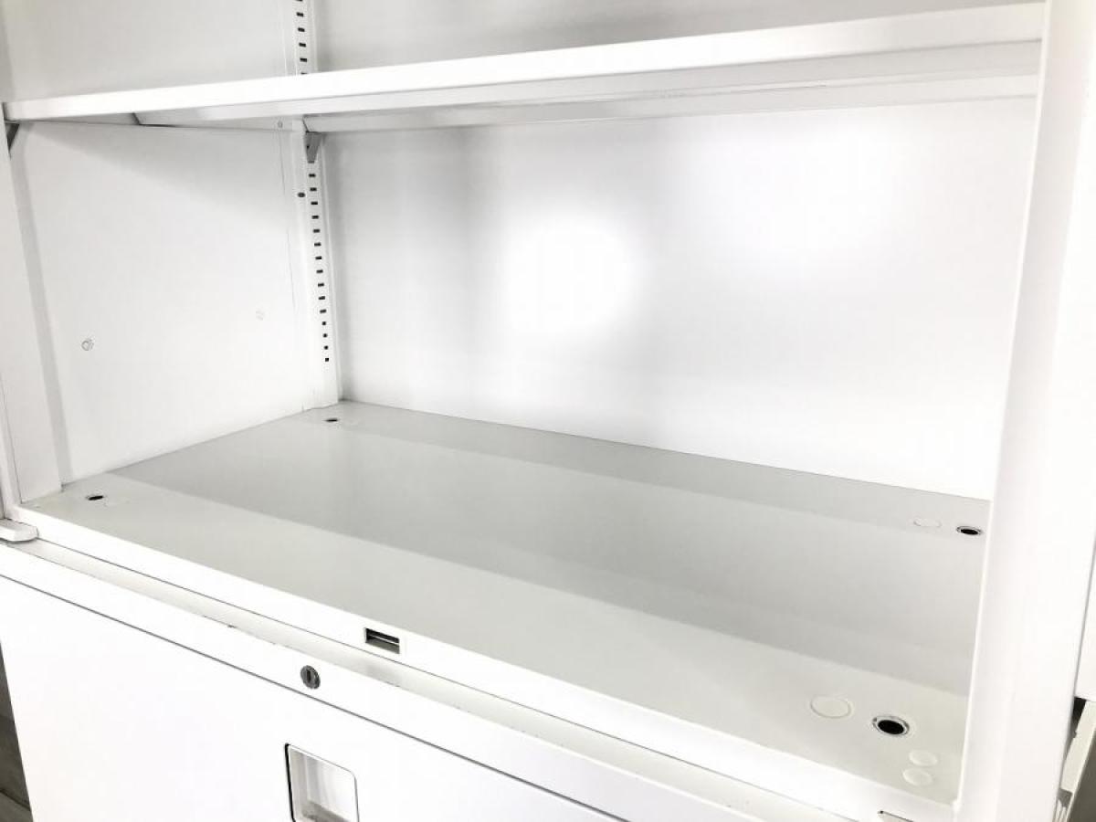 オカムラ レクトライン 3段ラテラル+両開き扉の書庫セット ホワイト シリンダー錠 鍵お付けします 人気商品