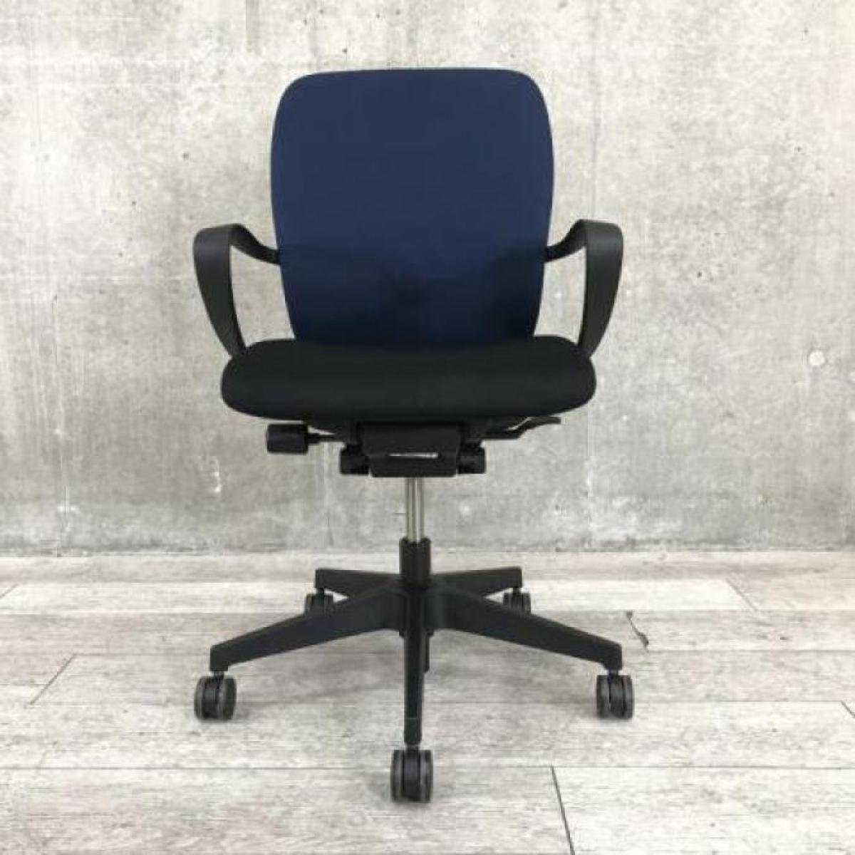 【背もたれ・座面使用感のすれあり】イトーキ製 人気高いフルゴシリーズ ブラック×ネイビーブルー 肘付きローバックチェア!!【関西倉庫在庫】