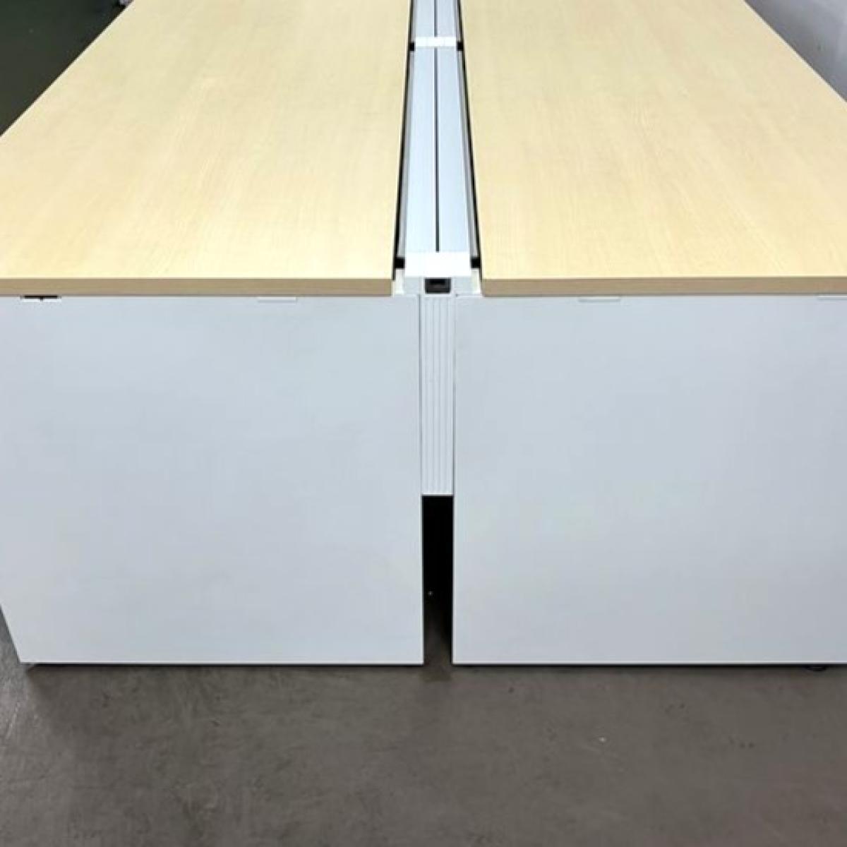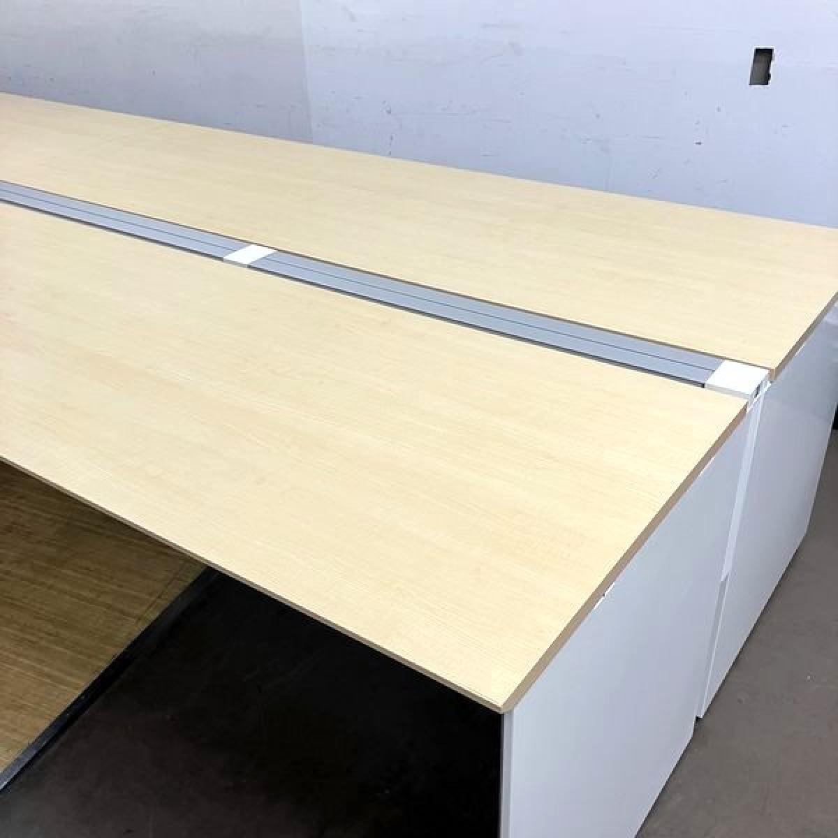 最先端フリーアドレスデスク 8様推奨サイズ コクヨ ワークヴィスタシリーズ 明るい木目天板×ホワイト W4000(W2000+W2000)×D1400 天板カラー:ライトナチュラル【愛知・名古屋・豊田・静岡・浜松】- 名古屋千種店