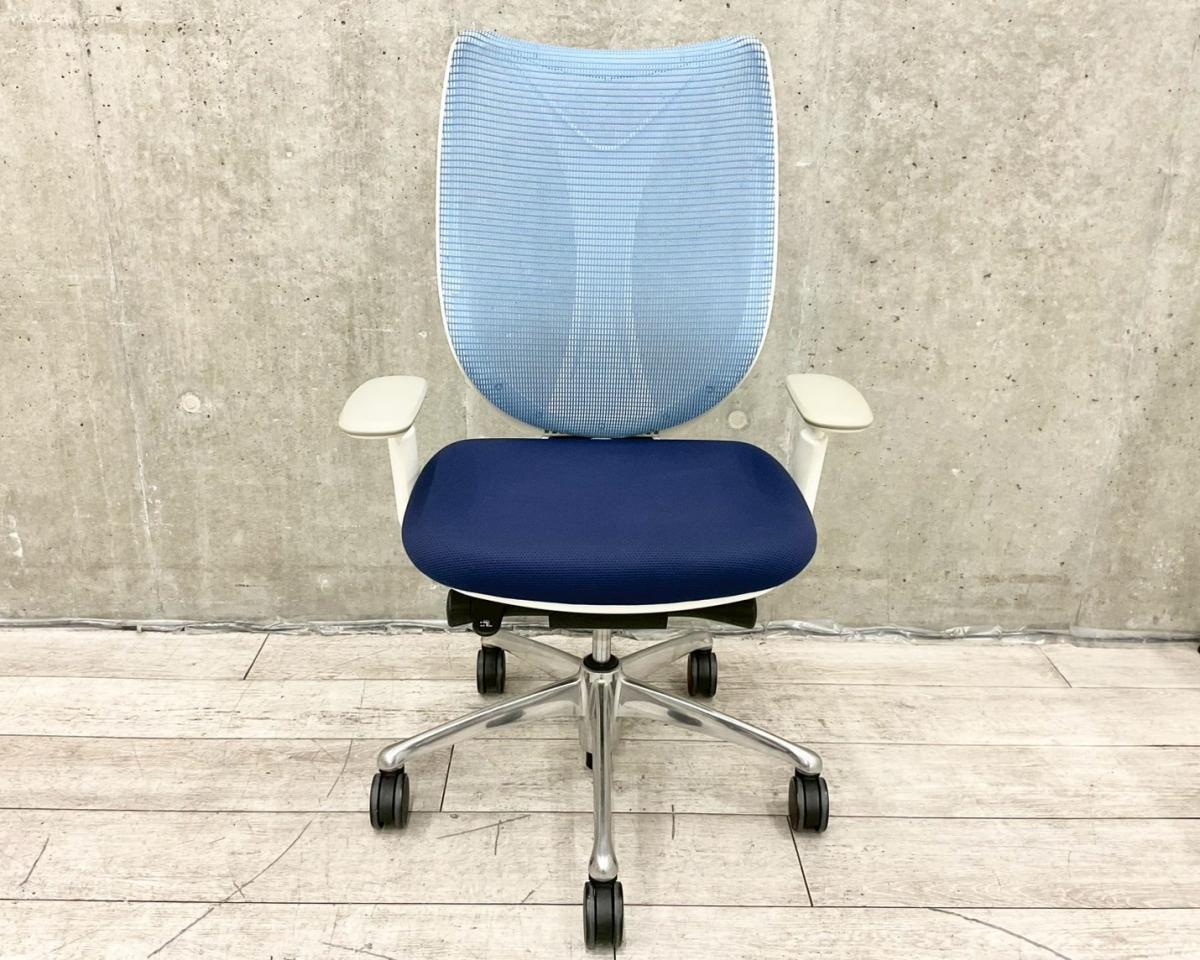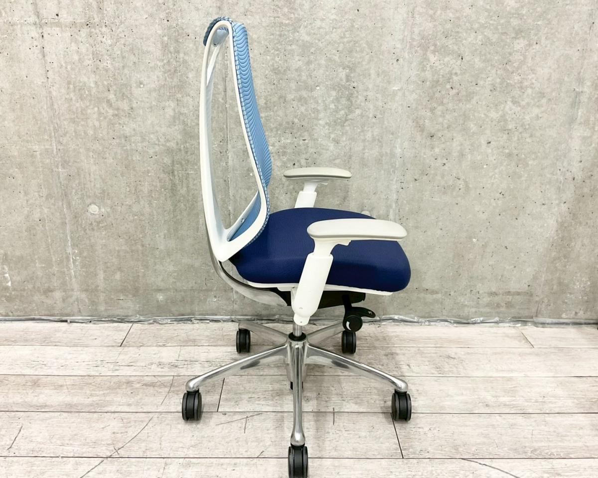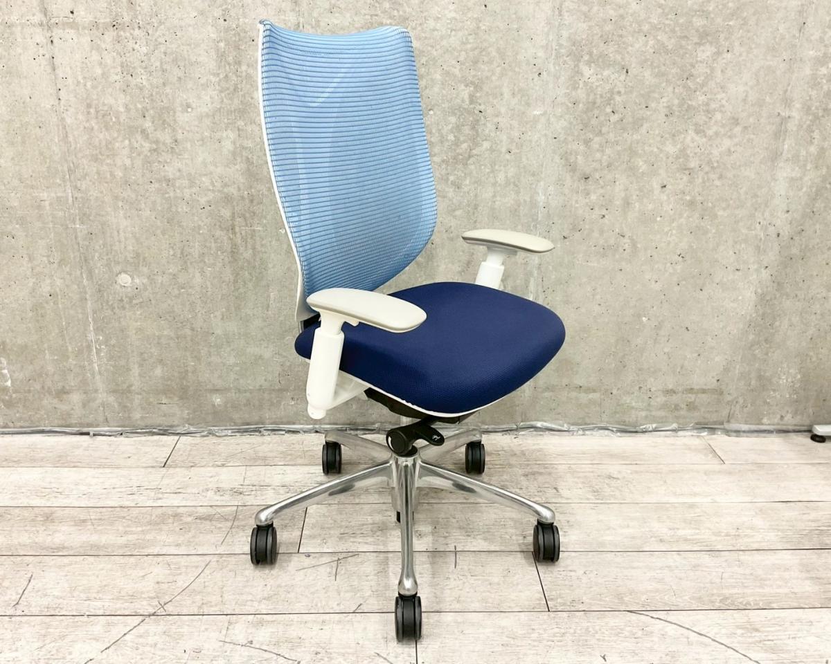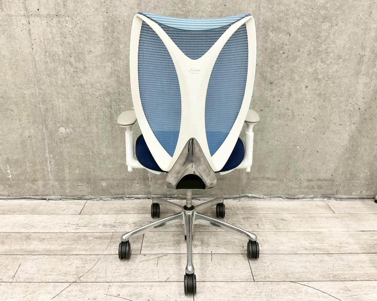 【在庫入替セール品】【前傾チルト付!流れるような美しいフォルムの最高級メッシュチェア!】■オカムラ(okamura)製 Sabrina(サブリナ) ハイバック 肘付き ■可動肘 ■背面メッシュ:アクアブルー/座面:ブルー/ホワイトフレーム【弊社使用欄:A01014866】【SN】- 渋谷サテライト