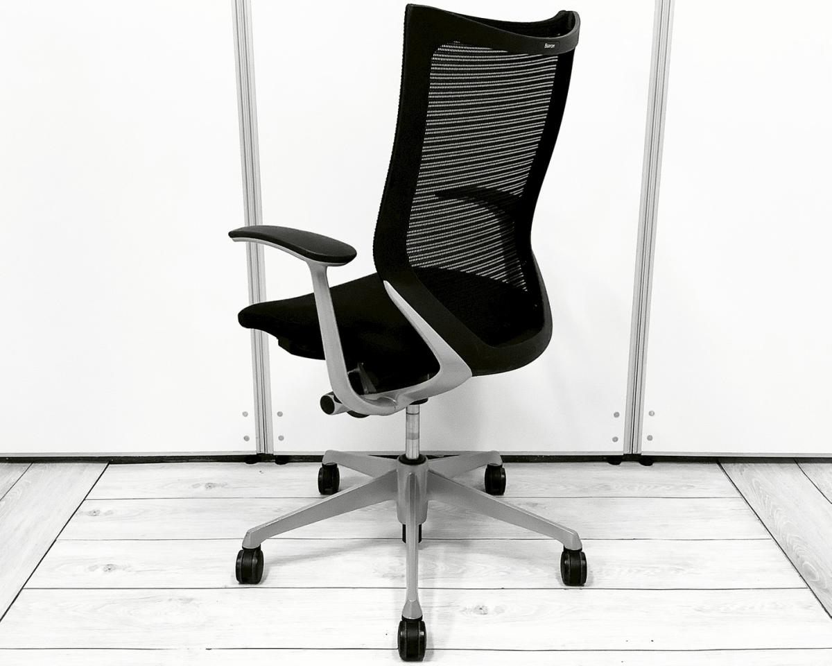 【長時間の着座でも疲れにくい!ベストなポジションが得られる先進設計!】■オカムラ バロンチェア 肘付 ブラック ハイバック シルバーフレーム ■良い椅子は腰を守る投資です!【Okamura Baron】