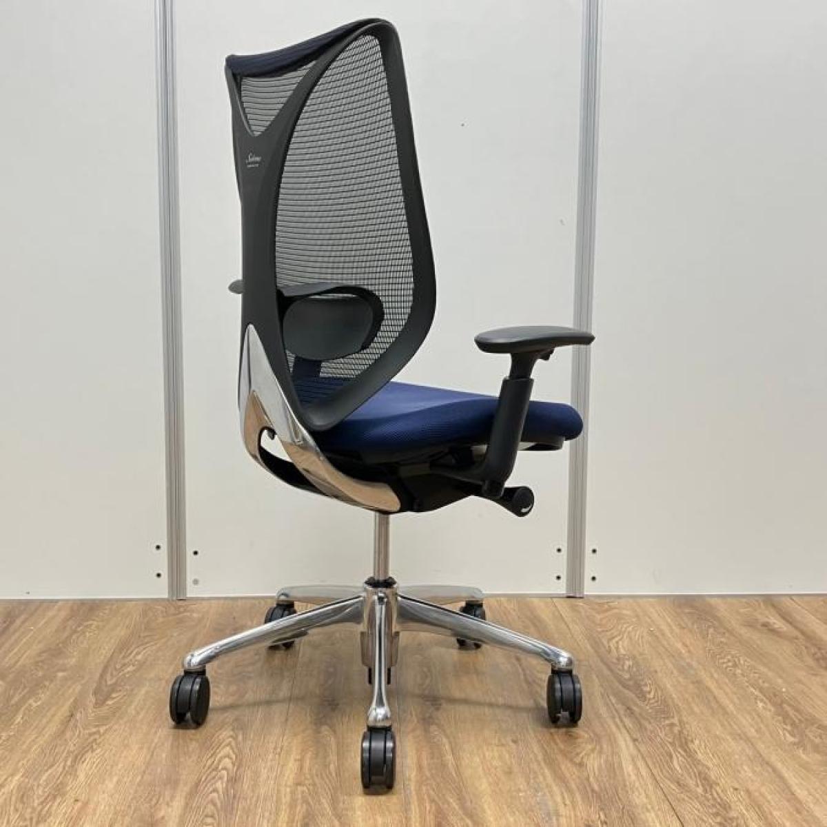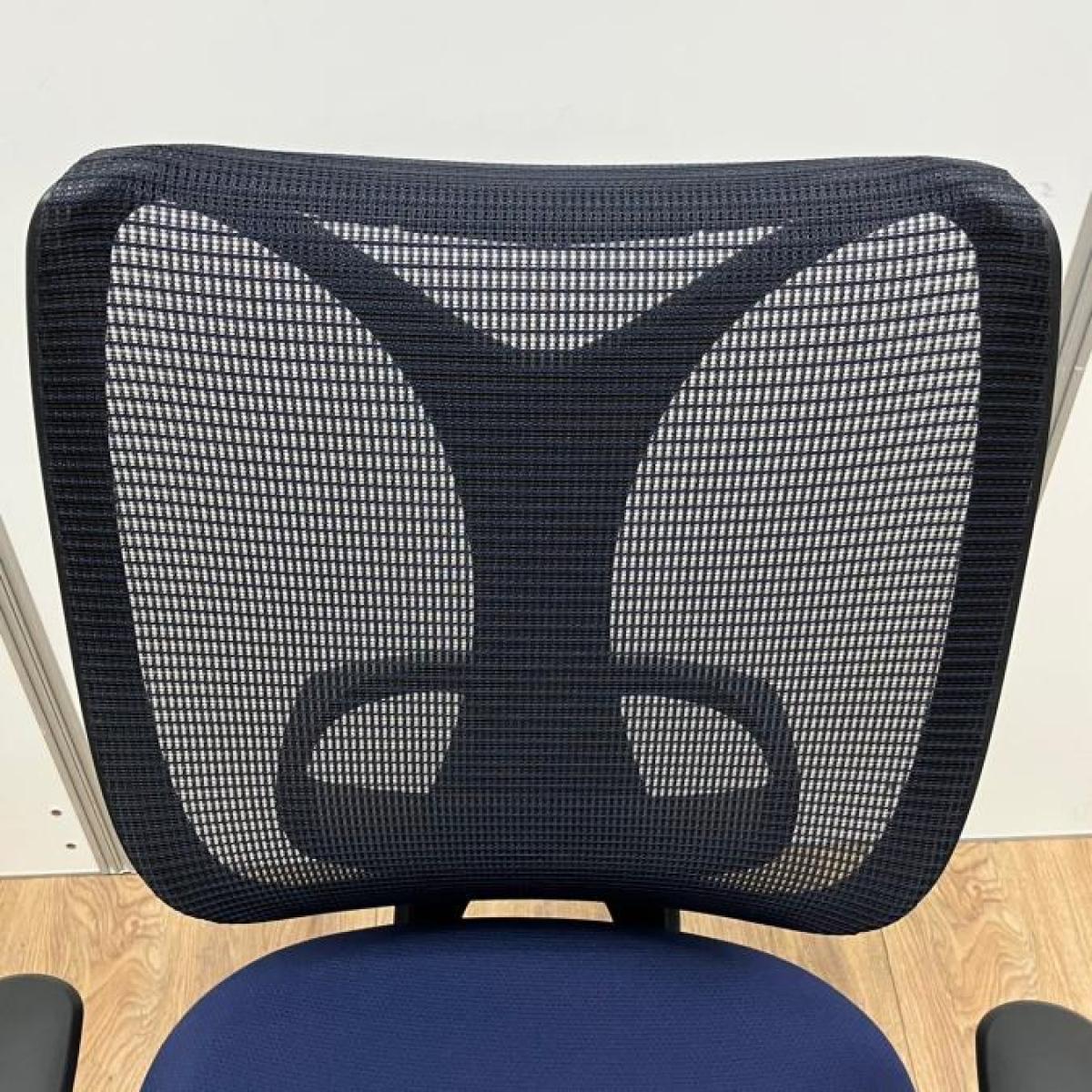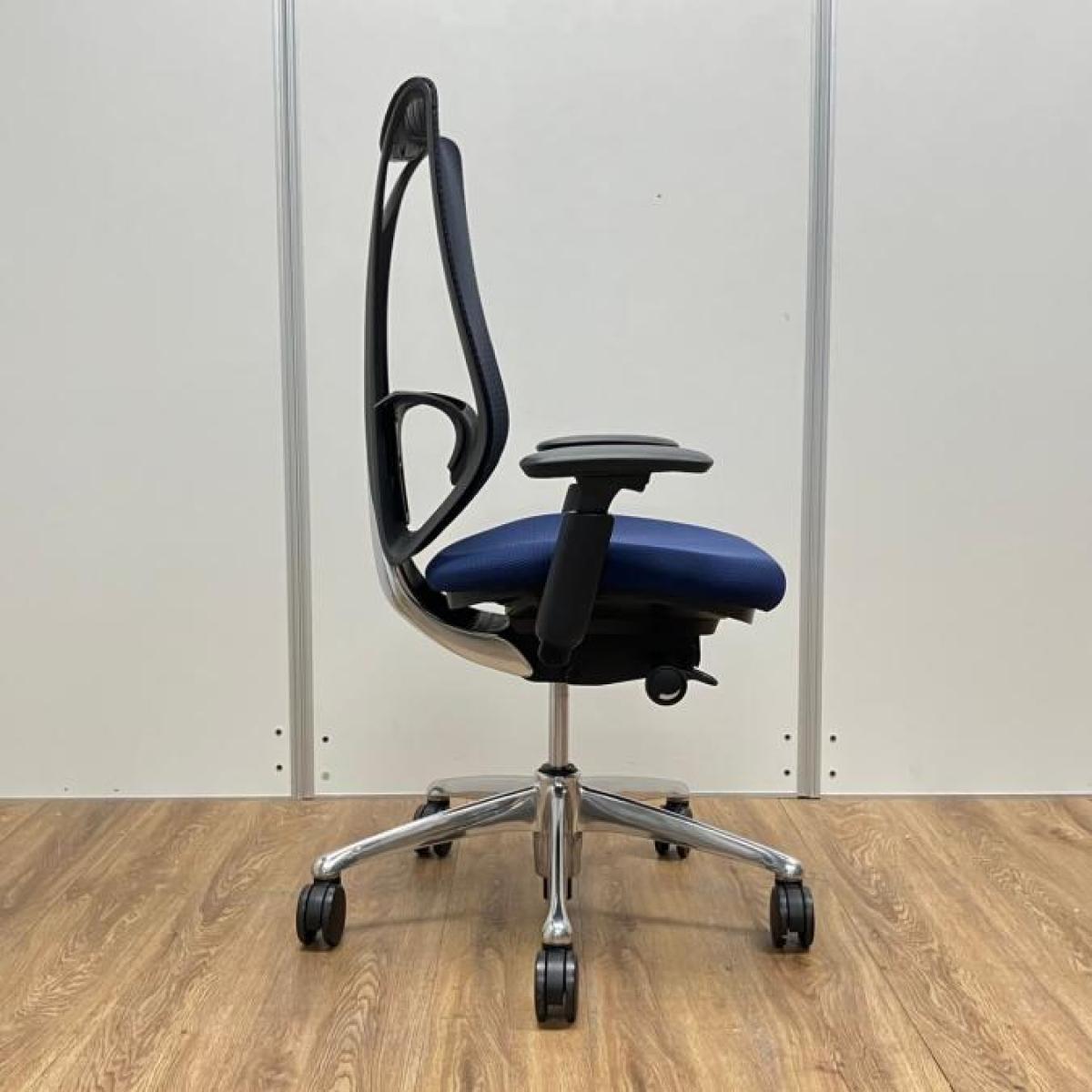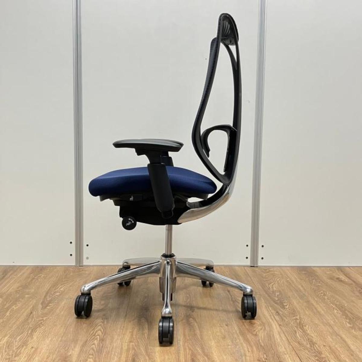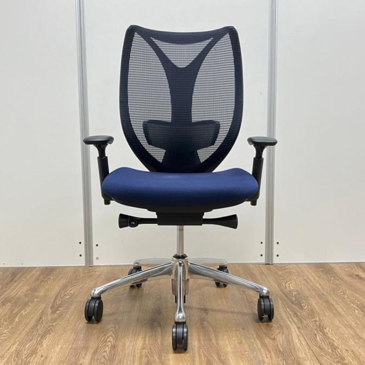 オカムラ製 サブリナ ダークブルー ブラックフレーム 肘無し ハイバック 背面メッシュ ランバーサポート 前傾チルト ポリッシュ脚 アジャストアーム※可動肘 テレワークではすっかりお馴染み 肘付きハイバックチェア!!- 京都東寺店