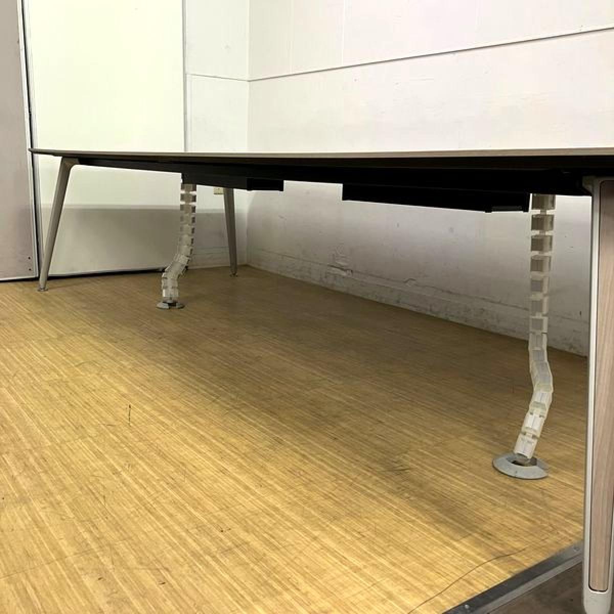 【定価70万円越え】オカムラ 高級会議テーブル プリシード ボックス配線付き W3200×D1200 おしゃれな木目プライズウッドミディアム色 塗装脚 8名様推奨サイズ- 名古屋千種店