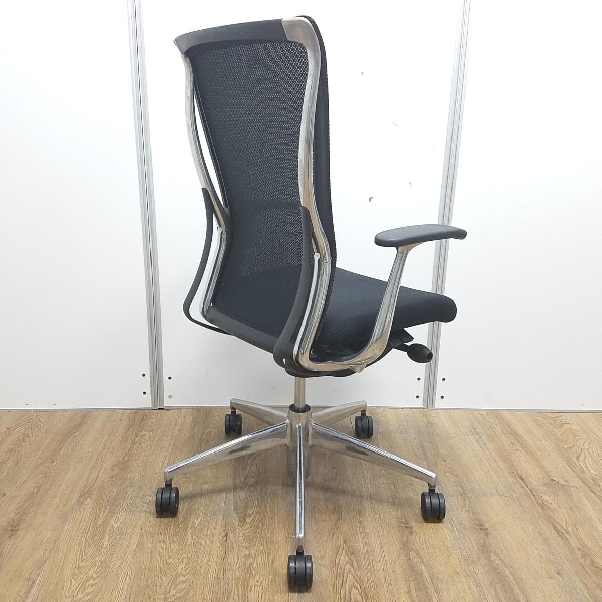 - 大きな曲線を描くフレームと表裏で見え方が変わる特殊メッシュで構成された背もたれ、そして2層構造の技術によって実現できた快適ながらも薄い座面は、先進的でありながらも柔らかさのあるスタイリッシュなデザインを実現しています。