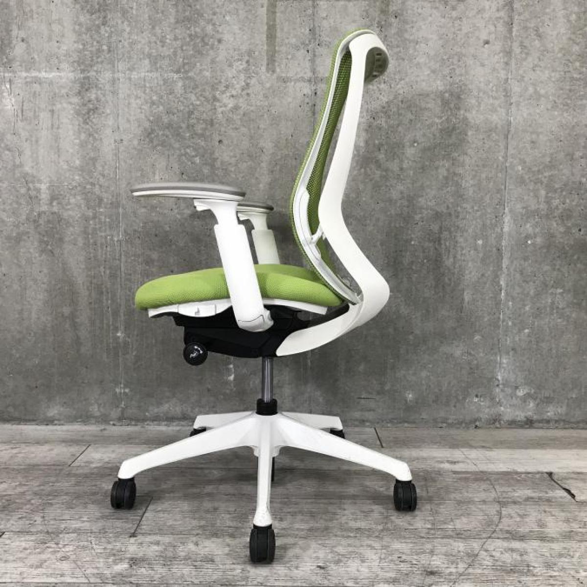 【ワーカーを支える機能を多数持つ人気チェア!優しい座り込みで姿勢も安定!】■オカムラ製 シルフィー 肘付ハイバックチェア 背面メッシュ ■可動肘 ■座面:ライムグリーン 脚:ホワイト オフィスバスターズ 東大阪店 2脚限定!