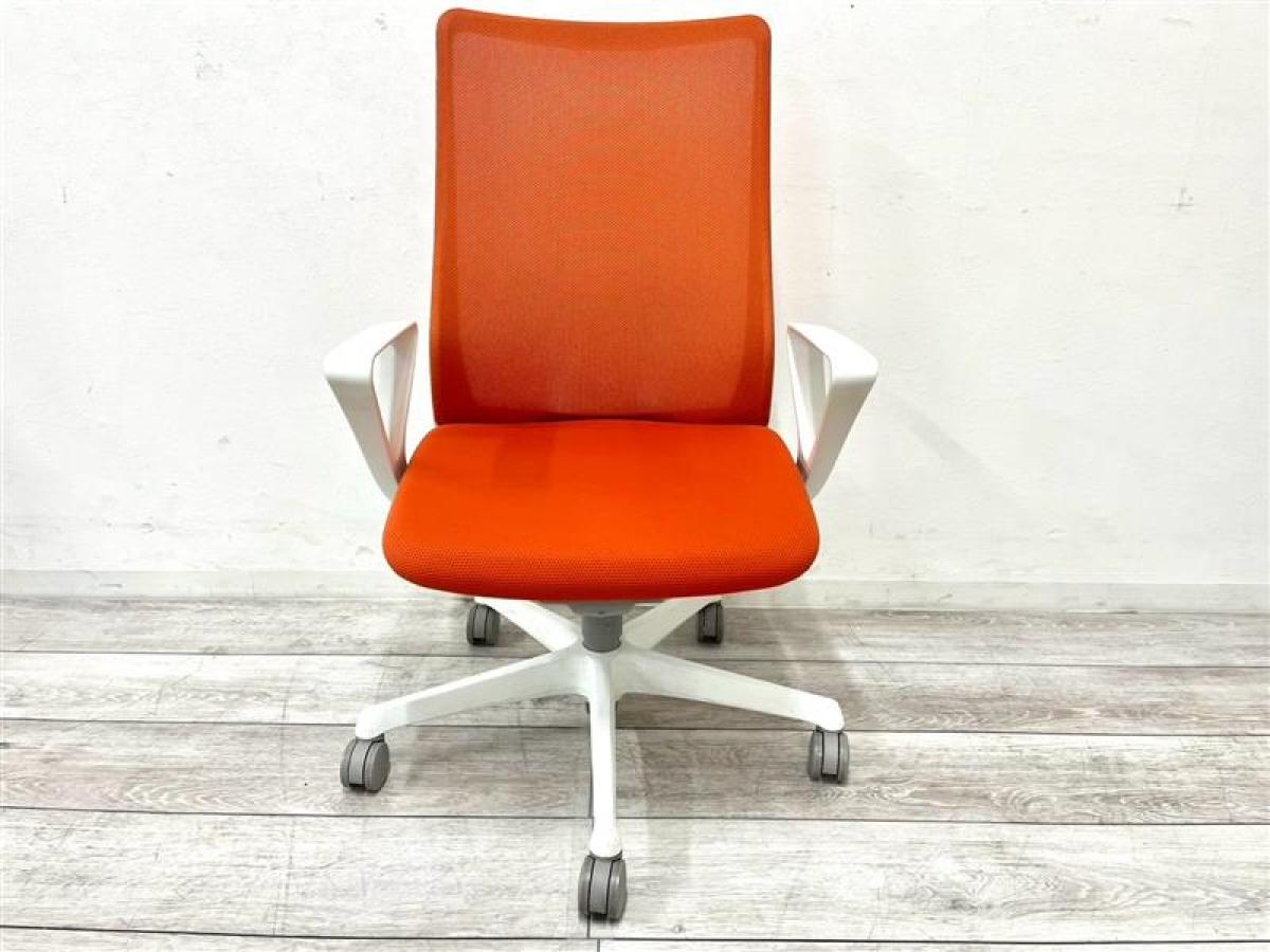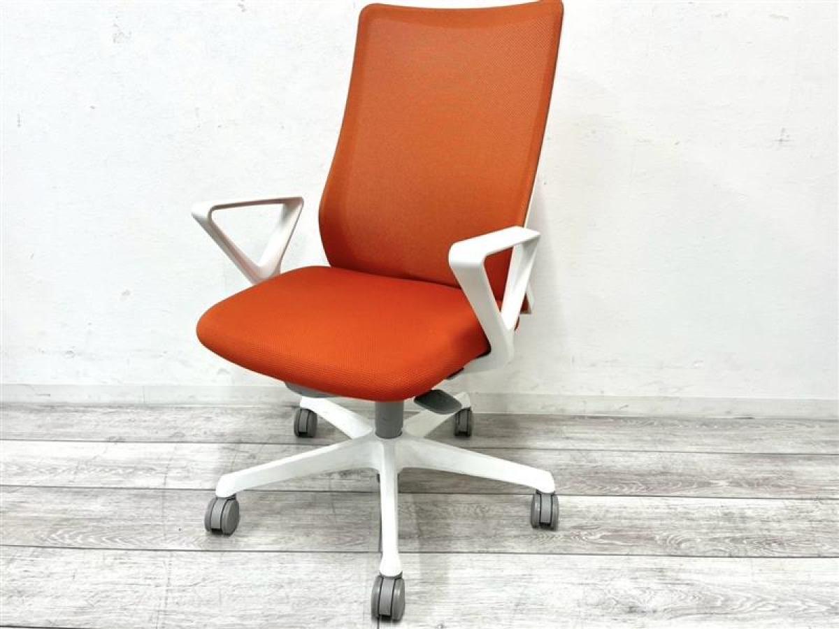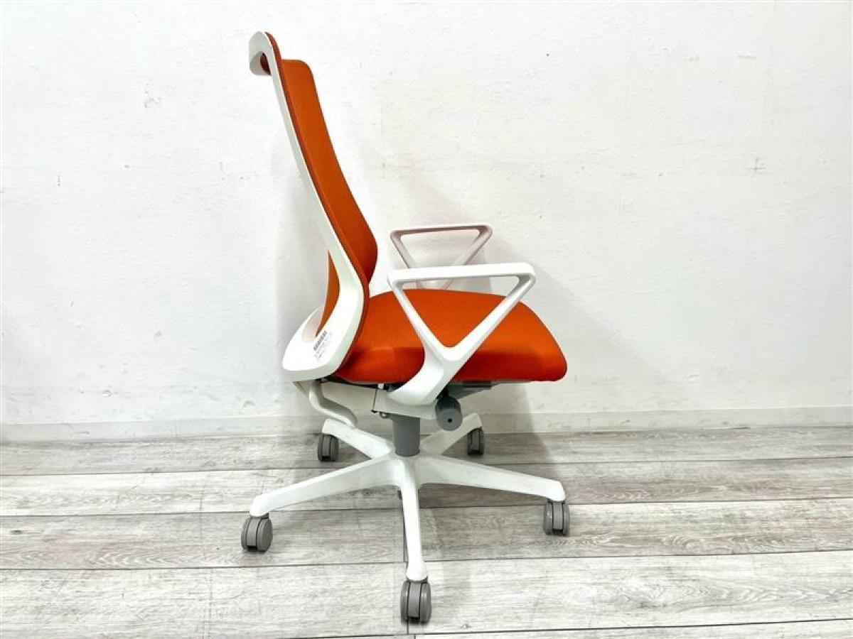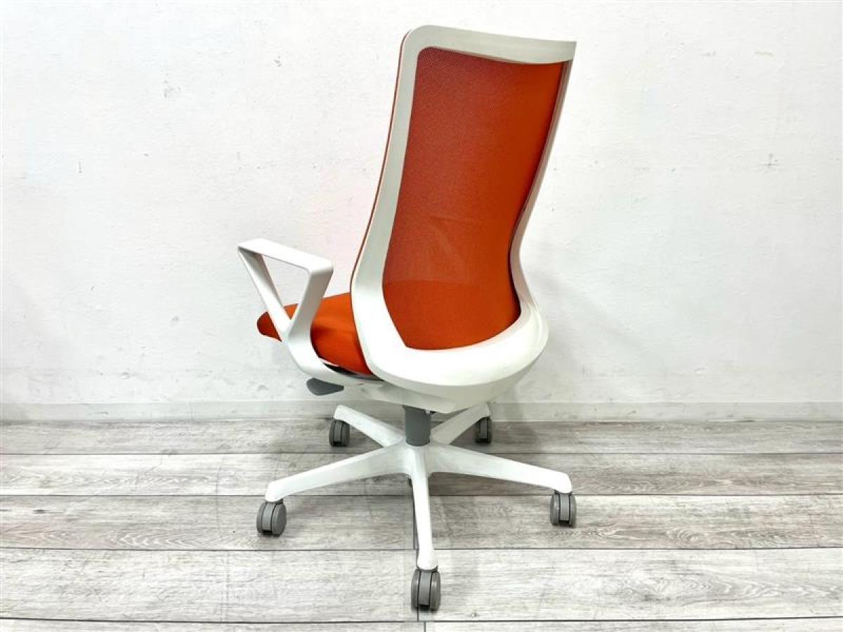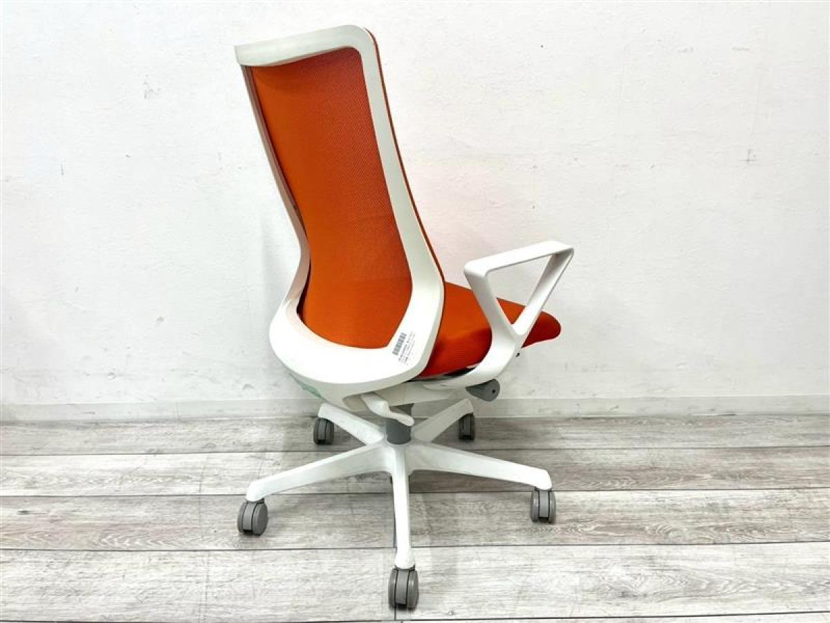 【背中を立体的に包み込むフィット感が心地よい!】■オカムラ フルーエントチェア 可動肘付 オレンジ ホワイトシェル ■あのシルフィの座り心地を低コストで再現!【Okamura Fluent】★