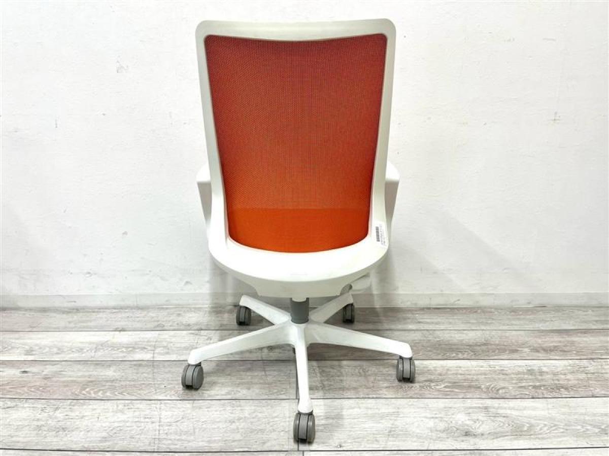【オカムラ現行品のメッシュチェア!】【背中を立体的に包み込む!シルフィの座り心地を低コストで再現!】■オカムラ(okamura)製 フルーエントチェア(Fluent) 肘付き ローバック 背面メッシュ ■可動肘 ■オレンジレッド×ホワイトシェル