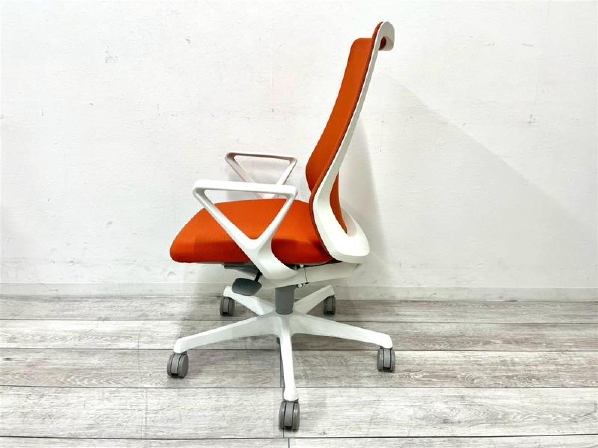 【背中を立体的に包み込むフィット感が心地よい!】■オカムラ フルーエントチェア 可動肘付 オレンジ ホワイトシェル ■あのシルフィの座り心地を低コストで再現!【Okamura Fluent】★