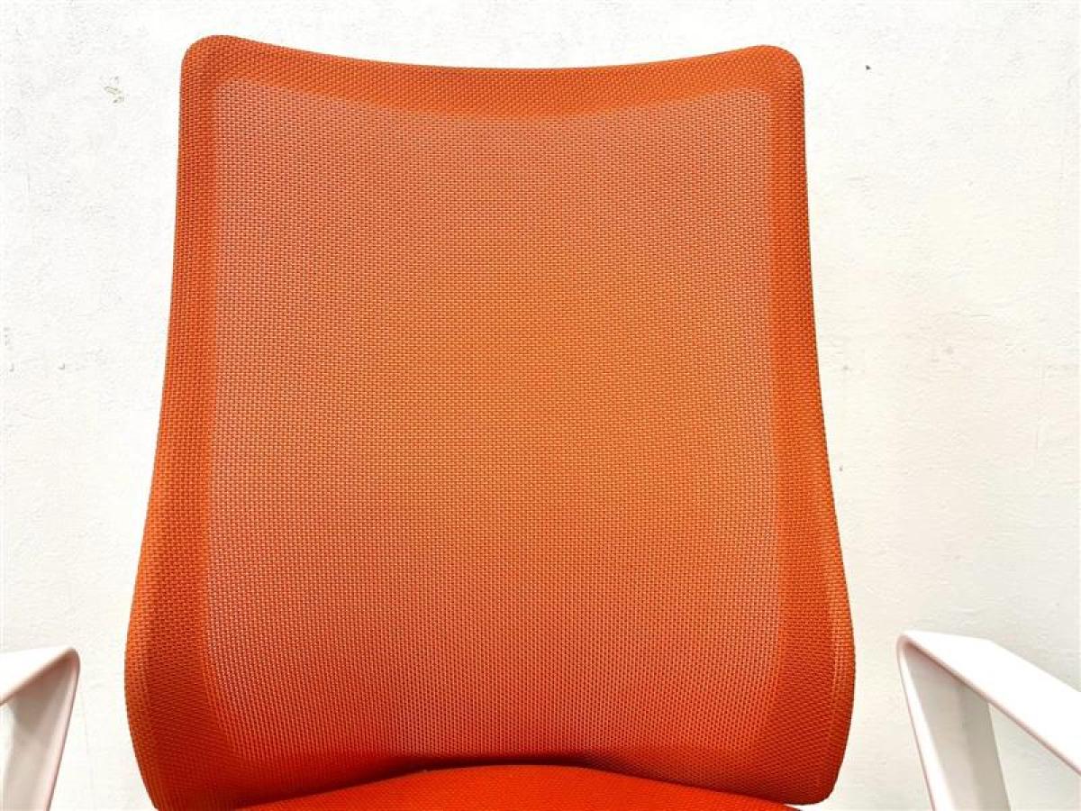 【背中を立体的に包み込む!】【シルフィの座り心地を低コストで再現!】/オススメ(おすすめ) /人気商品【弊社使用欄:A01034520】■肘付き ローバック 背面メッシュ ■可動肘 ■オレンジレッド×ホワイトシェル/オカムラ(okamura)製 フルーエントチェア(Fluent)