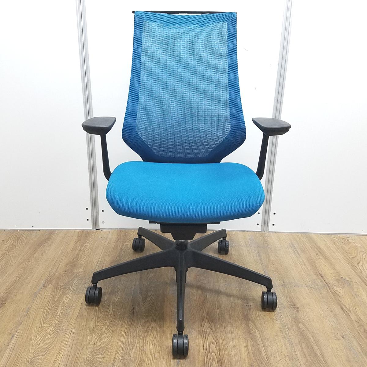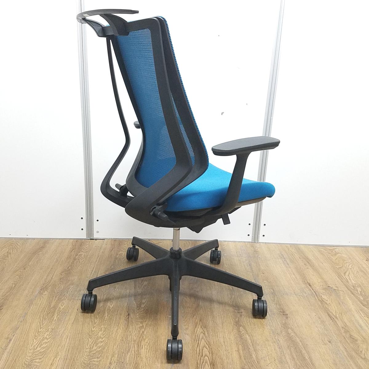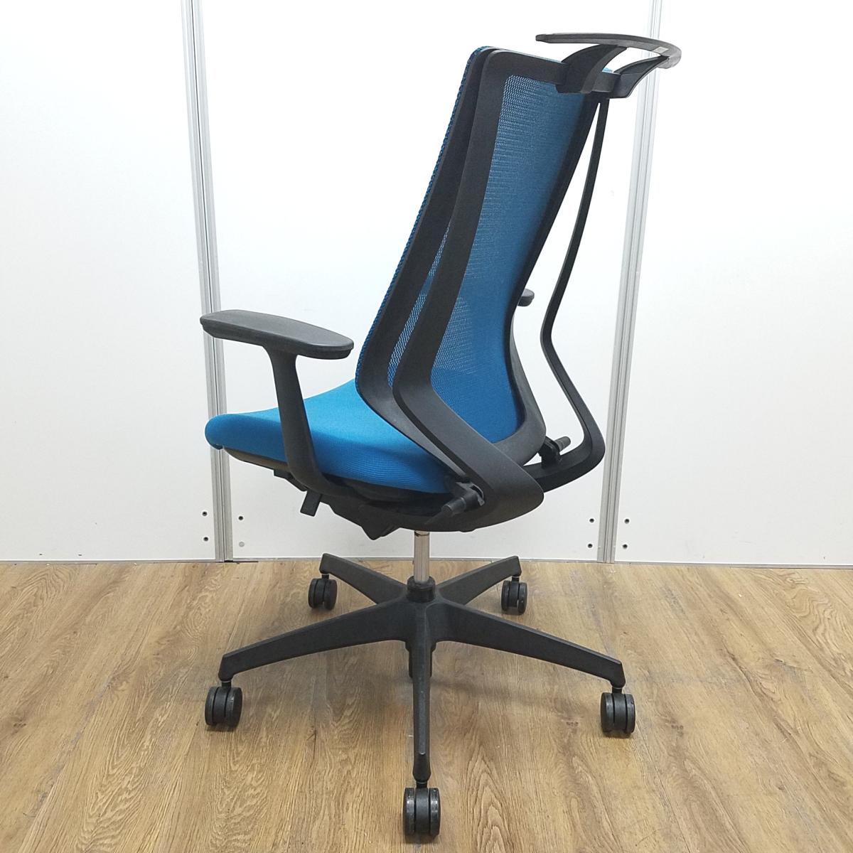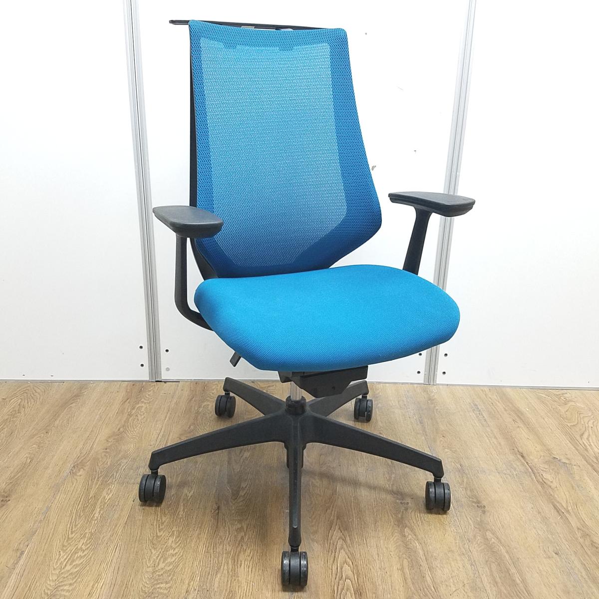 ■KOKUYO/コクヨ ■デュオラ(Duora)チェア ■プルシアンブルー×ホワイトシェル×ブラック脚 ■肘付き/可動肘 ■ハイバック ■背面/メッシュ 座面/布 ■コートハンガー付き ■オススメ/人気/定番商品 【弊社使用欄:A01040309 K】【ID】