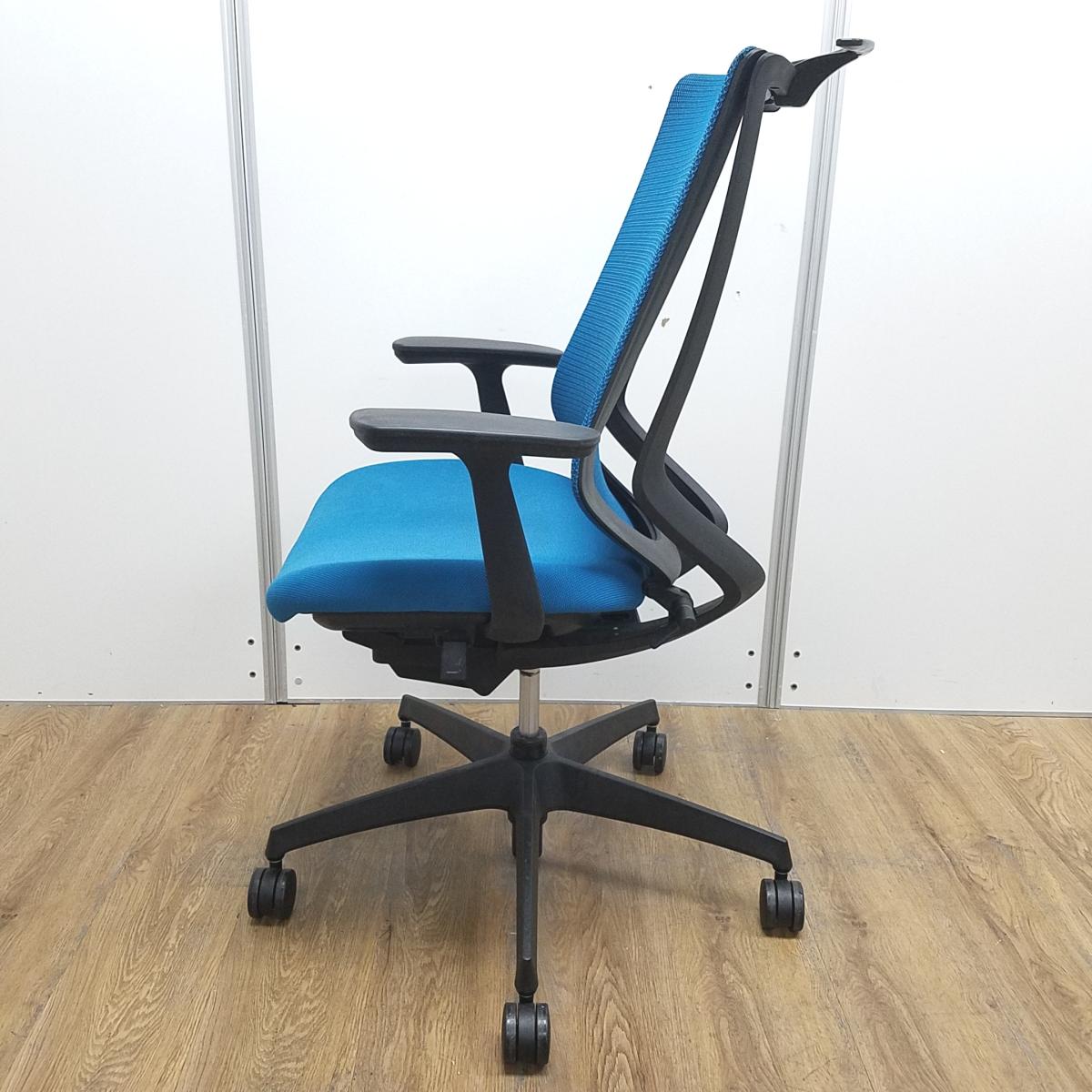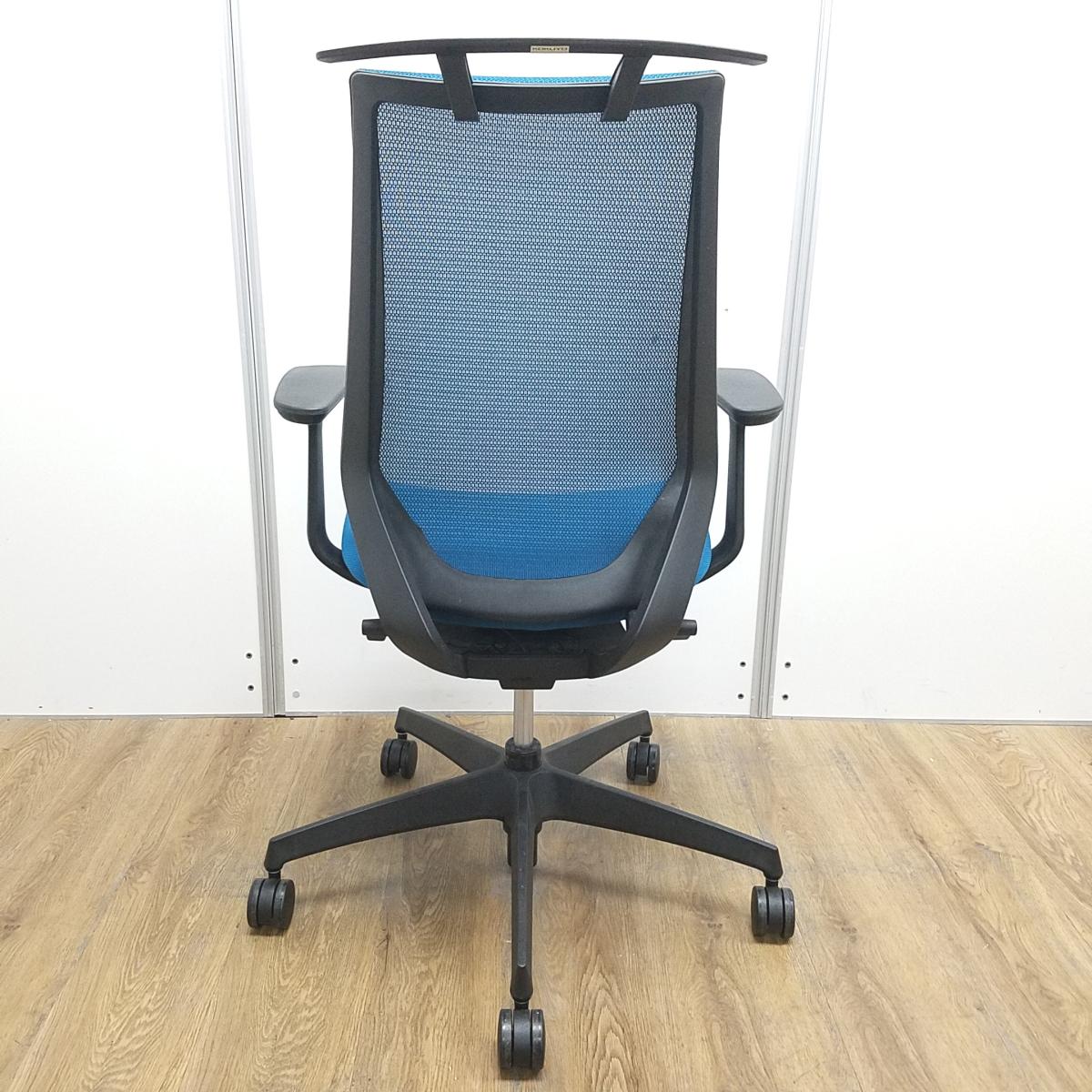 コクヨ製 デュオラ(Duora) ターコイズブルー 肘付き ハイバック 背面メッシュ T字肘※固定肘 コートハンガー付 二重フレーム構造がもたらすしなやかで美しい背もたれ機能! 簡易操作で自分に合った姿勢をサポート! 肘付きハイバックチェア!!サーキュラーバリューCO2削減量の算出について