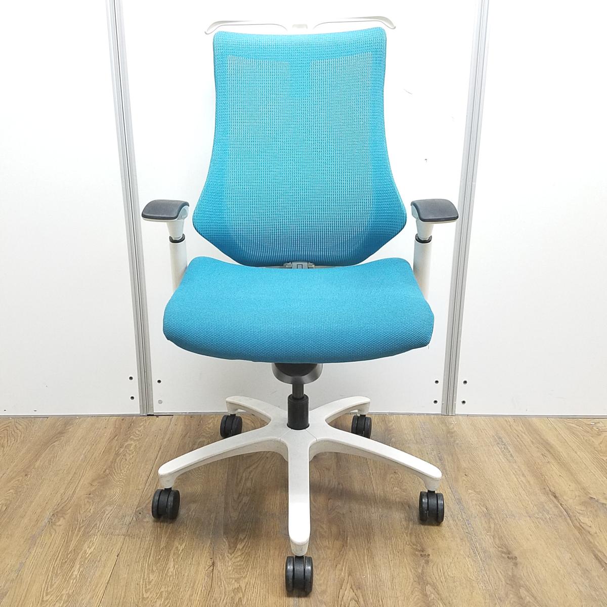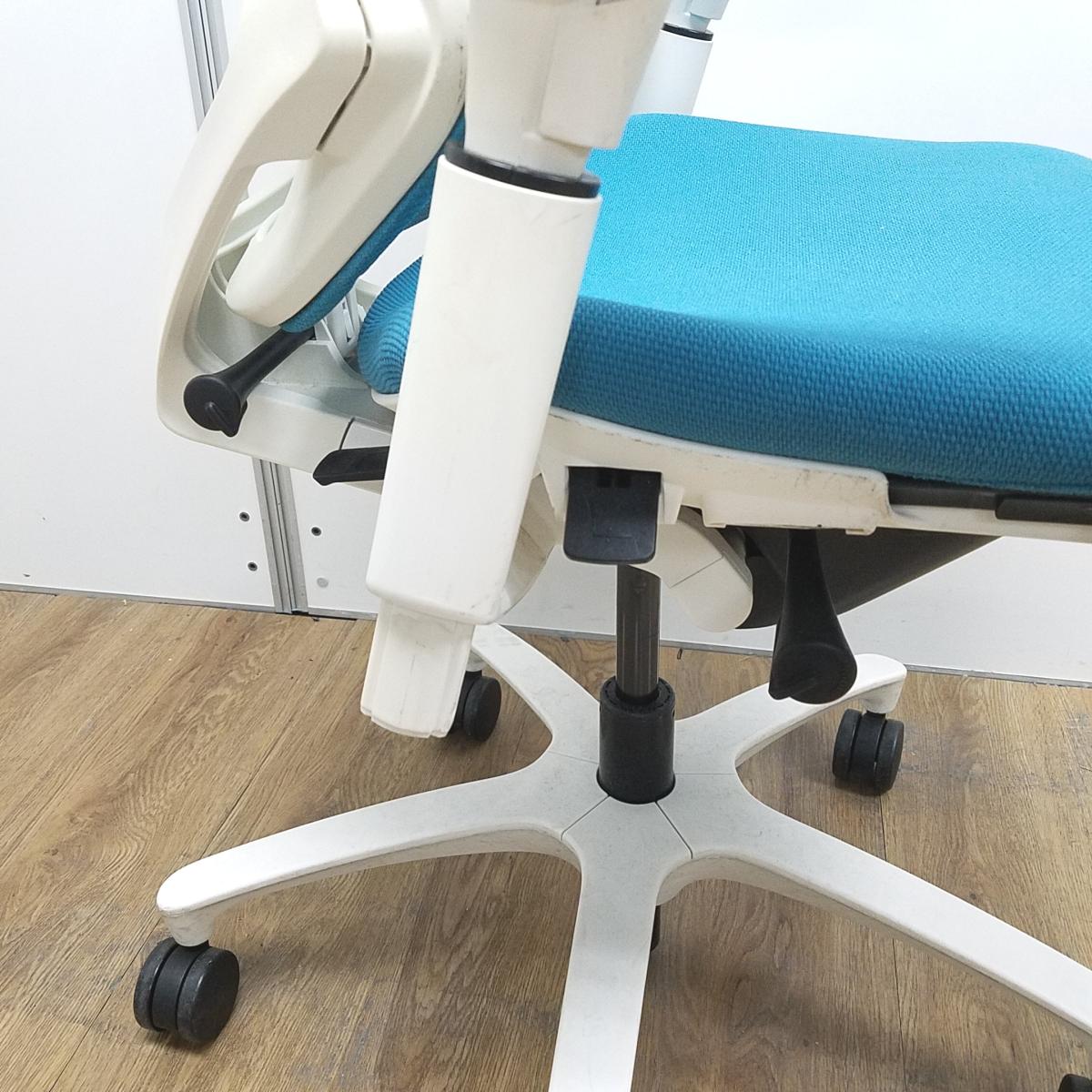 【商品入替のため、残り8脚限り】イトーキ製 エフ(f) ストロングブルー ホワイトフレーム 肘付き ハイバック 背面メッシュ コートハンガー アジャスタブル※可動肘(旧タイプ) 姿勢の変化にフレキシブルに対応! スタイリッシュで座り心地も抜群な高機能チェア! 肘付きハイバックチェア!!在庫がある店舗一覧