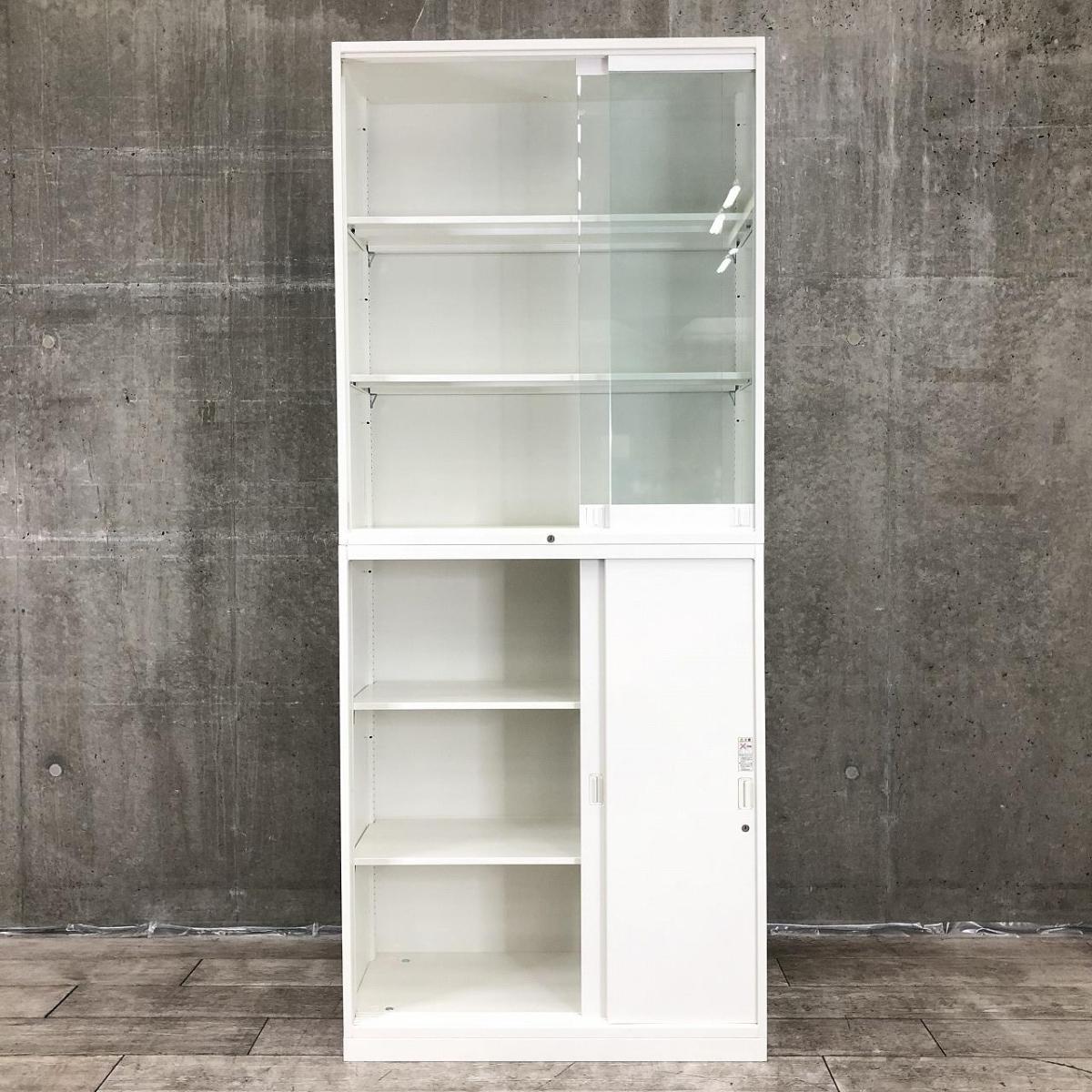 【スライド引き戸だから開閉スペースいらず!人気の書庫セット!】■オカムラ(okamura)製 レクトライン 上下引き違い 書庫セット ■ホワイト ■シリンダー錠 【弊社使用欄:A01035184/A01035183】【SN】