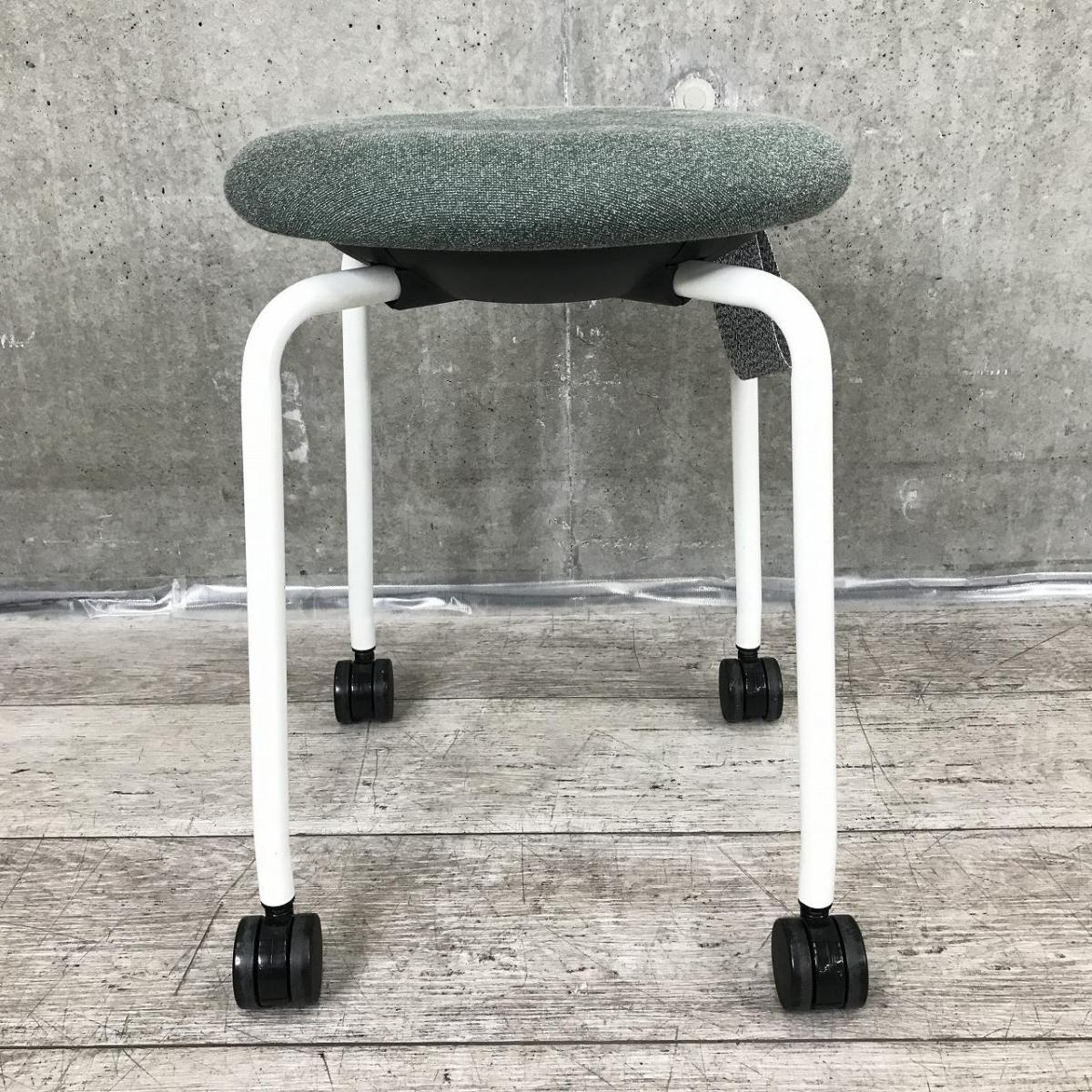 【作業に合わせて柔軟に対応できるキャスター付き!スタッキングも可能!】■オカムラ(okamura)製 スプリント(SPRINT)シリーズ スツール 丸椅子 ■キャスター付き ■座面ダークグリーン 脚ホワイト- 千葉店