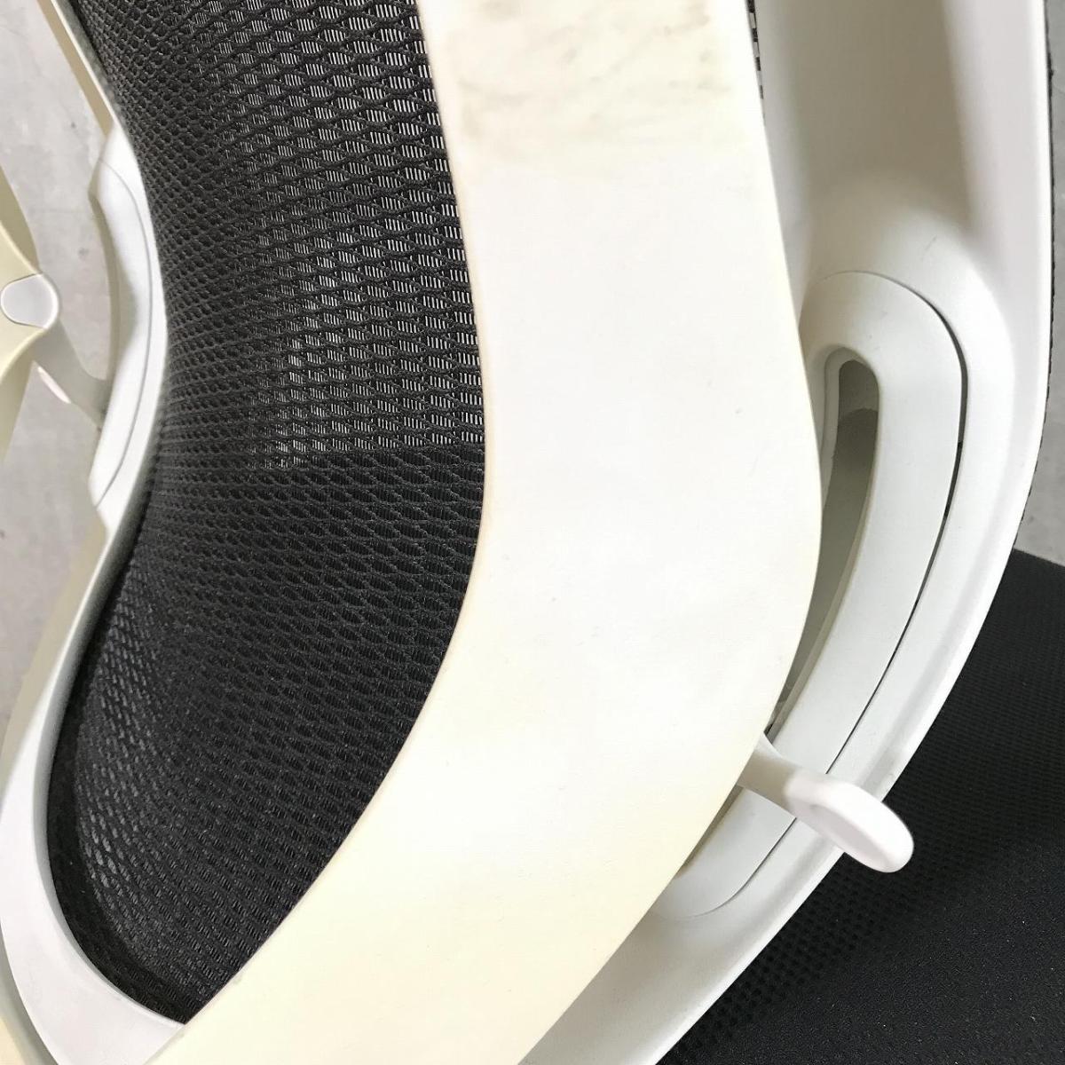 【前傾チルト機能付き】【オカムラ製品で最も人気を集める高機能メッシュチェア!】■オカムラ(okamura)製 シルフィ(Sylphy)チェア 肘付き ハイバック 背面メッシュ ■固定肘/ハンガー付 ■昇降レバー角形 ■ブラック×ホワイトシェル ※シェル日焼け有【弊社使用欄:A01039020】サーキュラーバリューCO2削減量の算出について