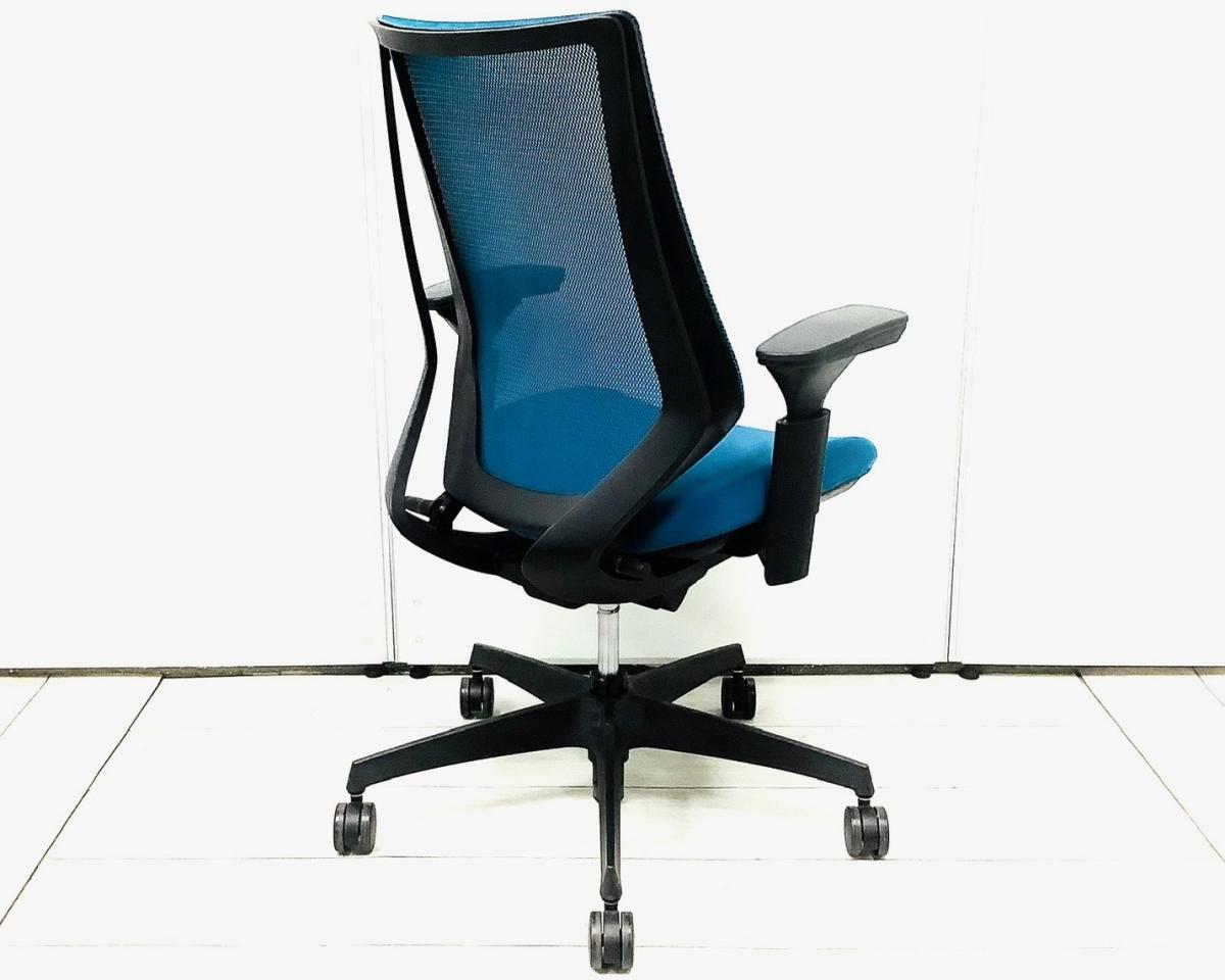■KOKUYO/コクヨ ■デュオラ(Duora)チェア ■プルシアンブルー×ホワイトシェル×ブラック脚 ■肘付き/可動肘 ■ハイバック ■背面/メッシュ 座面/布 ■コートハンガー付き ■オススメ/人気/定番商品 【弊社使用欄:A01040309】【ID】