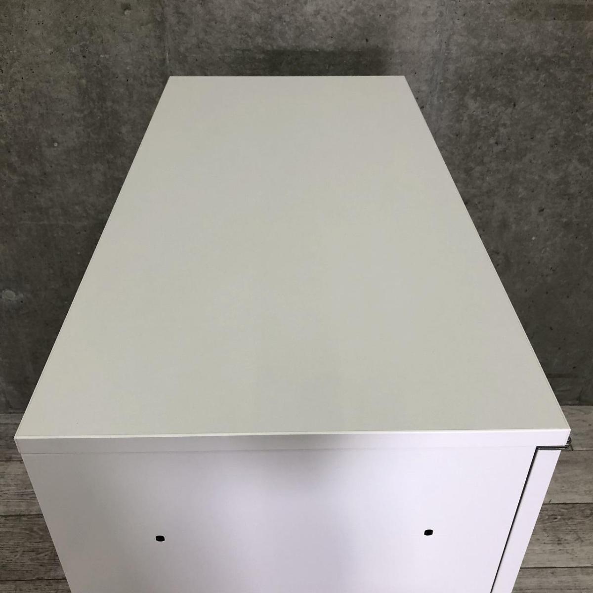 【オフィスの定番!大きく開いて見やすい両開き書庫!】■イトーキ(ITOKI)製 シンラインシリーズ (THIN LINE) 両開き書庫 ローキャビネット ■ホワイト ■シリンダー錠 ■天板/ベース付き- つくば店