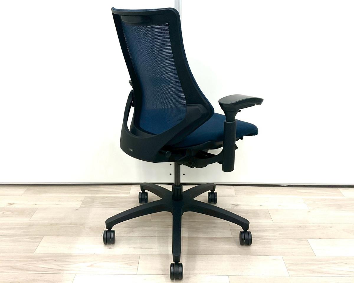 【最先端のデザインに快適な座り心地!】■イトーキ製 エフチェア 可動肘付 ネイビーブルー ■三次元フォルムが腰にフィット!【在庫入替セール品(本在庫限定価格)】