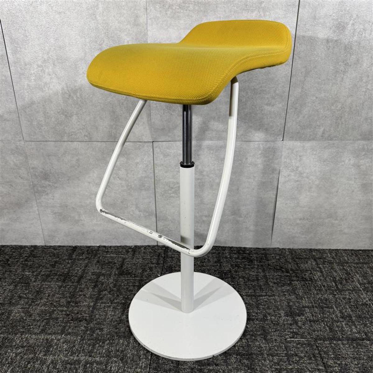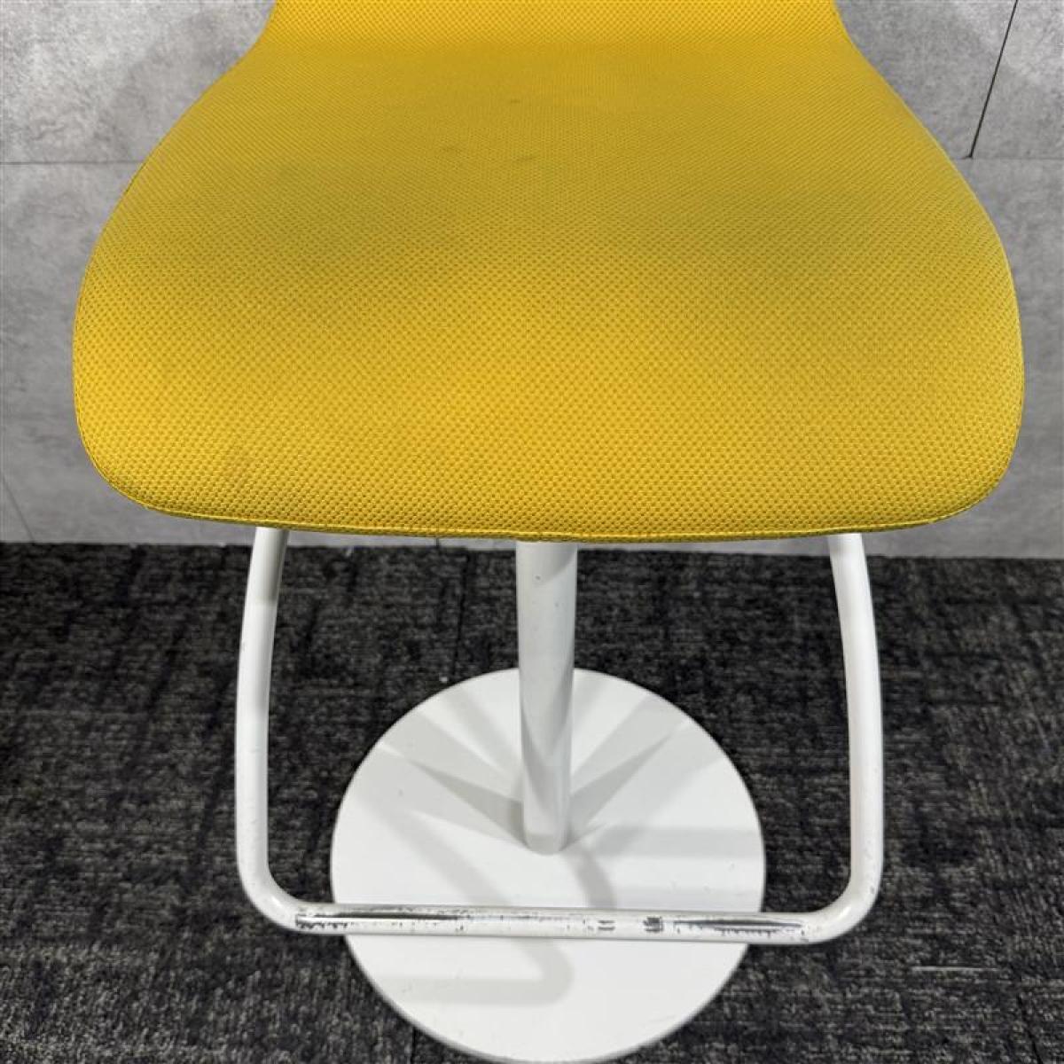 【状態考慮し特価☆スタイリッシュなデザイン!上下昇降可能なカウンターチェア!】■オカムラ メルチェシリーズ カウンターチェア 上下昇降 イエロー ハイチェア- 福岡博多店