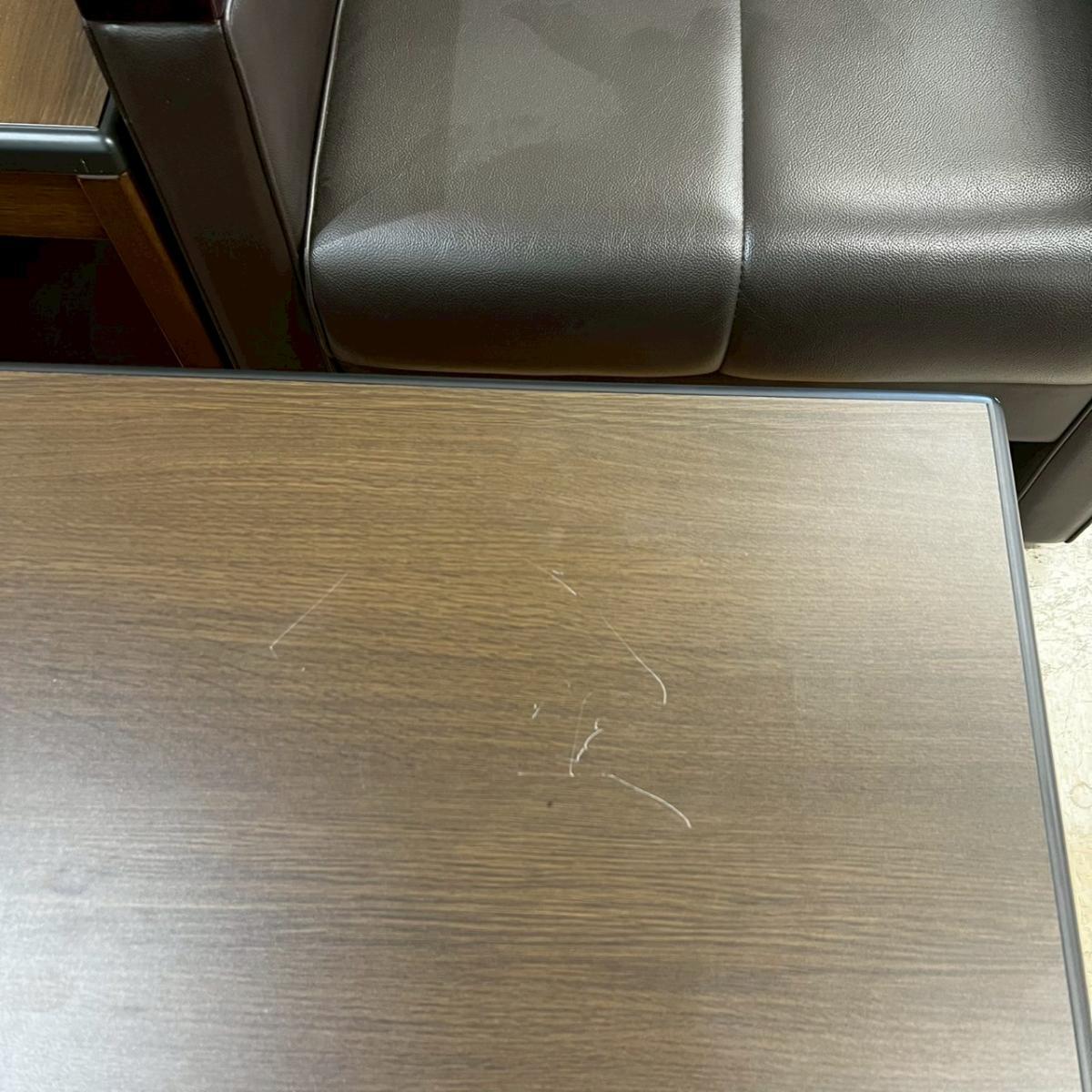 - 若干ありソファの場合、破け、ホツレ、へたり、しわ等が一部ある。(例、背もたれ、肘かけ、座面等にある。)センターテーブルの場合、傷・凹みが一部ある。(例、天板、 脚にある。)