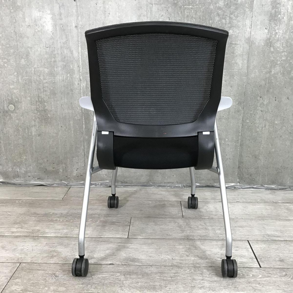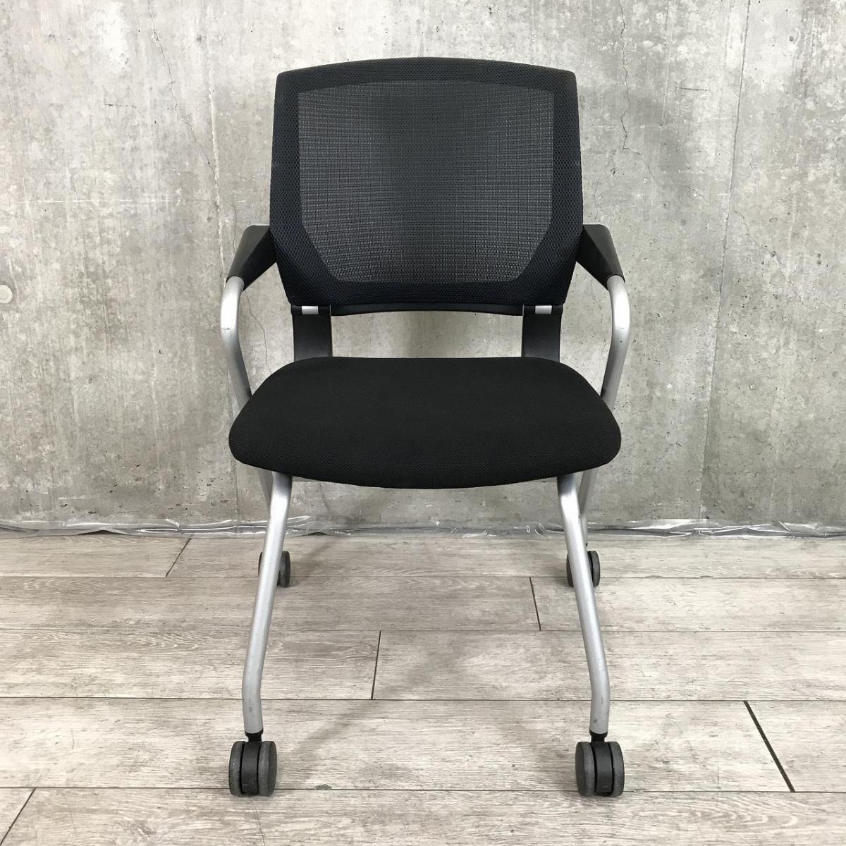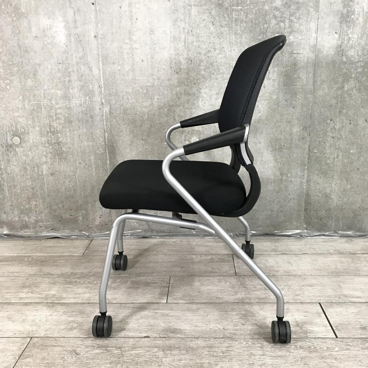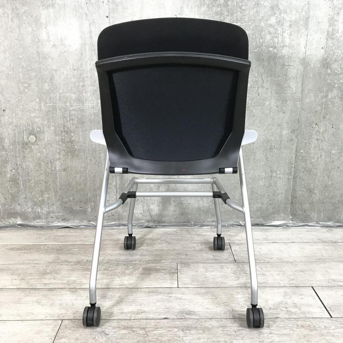 【会議室におすすめ!折り畳んで横に重ねて収納可能!】■コクヨ(KOKUYO)製 サテリテ(Saterite)チェア ミーティングチェア スタッキングチェア 会議用 背面メッシュ ■固定肘 ■キャスター付 ■ブラック【移動も楽々!】【2509】弊社使用欄【A01037205】- 埼玉本店