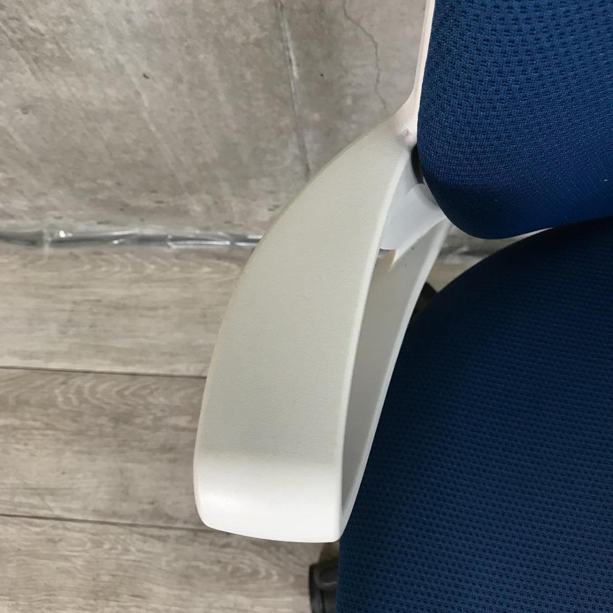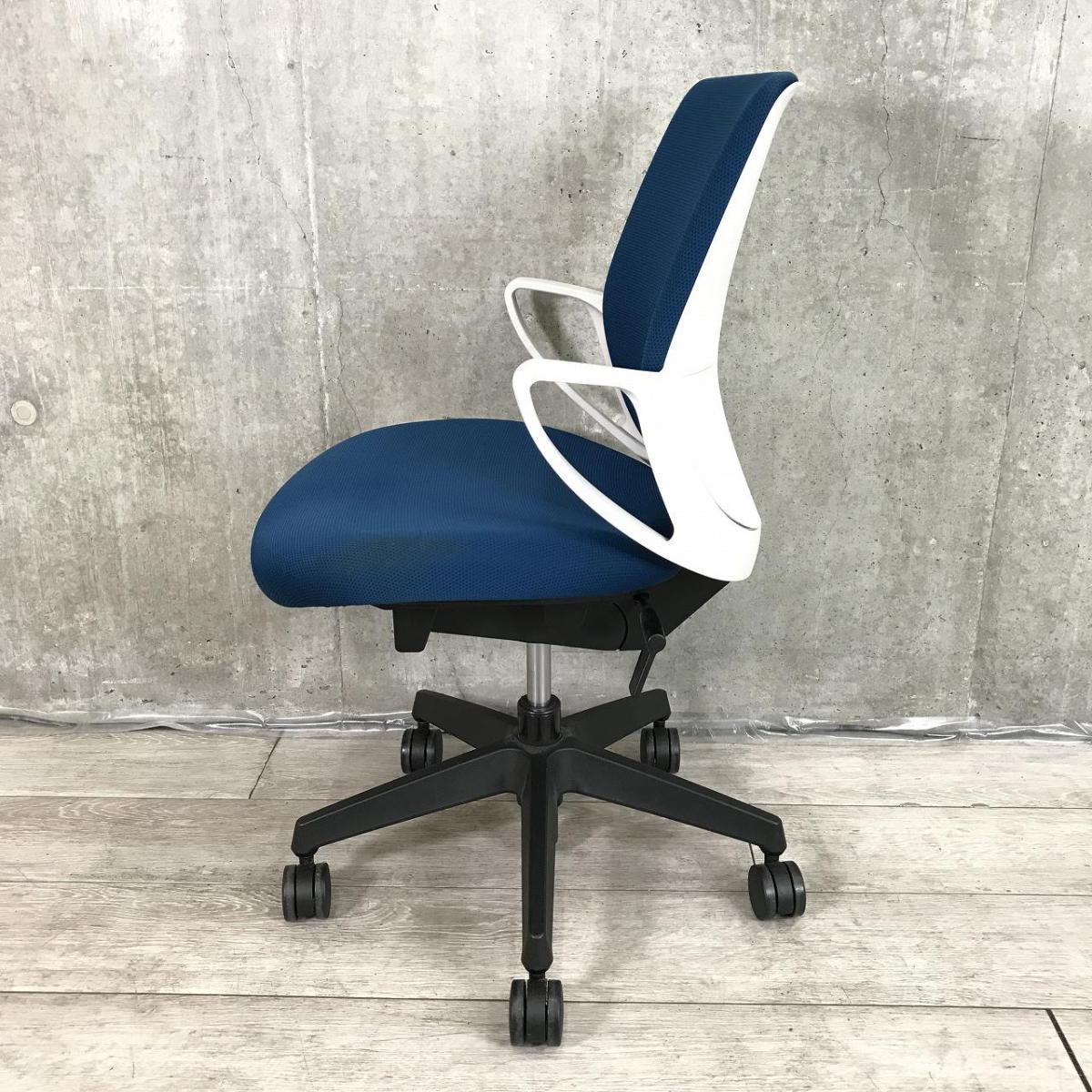 【デスクにスッキリ収納できるコンパクト設計!スマートデザインで使い勝手抜群!】■コクヨ(KOKUYO)製 ピコラ(picora)チェア 肘付き ローバック ■サークル肘 ■プルシアンブルー×ホワイトシェル×脚ブラック※背面日焼け有【2509】弊社使用欄【A01038442】- 埼玉本店