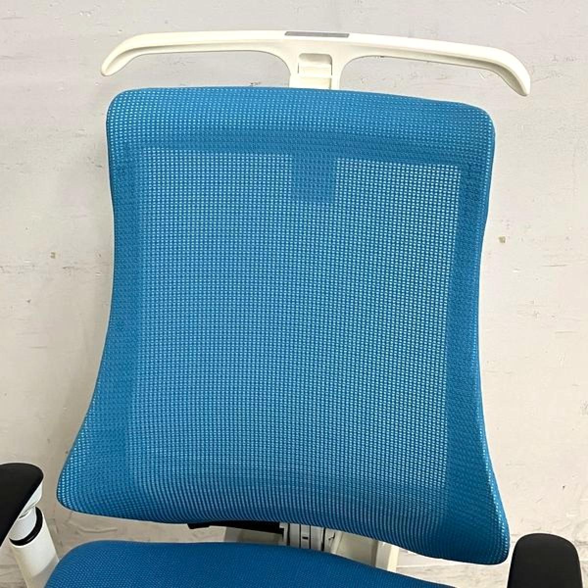 姿勢の変化にフレキシブルに対応!スタイリッシュで座り心地も抜群な大人気の高機能チェアが入荷! ■イトーキ(ITOKI) エフチェア(f)/ストロングブルー×ホワイトフレームメッシュ 背面メッシュ コートハンガー付・可動肘付 旧タイプ