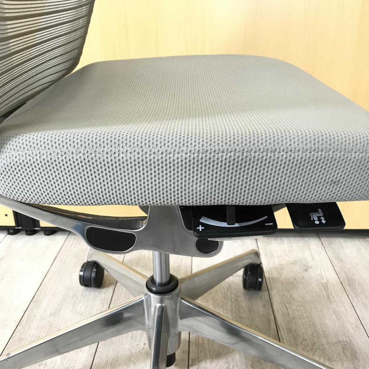 座面の高さや前後などの基本的な調整レバーが座面裏の前方に集約されており、姿勢を変えずに調節ができます。