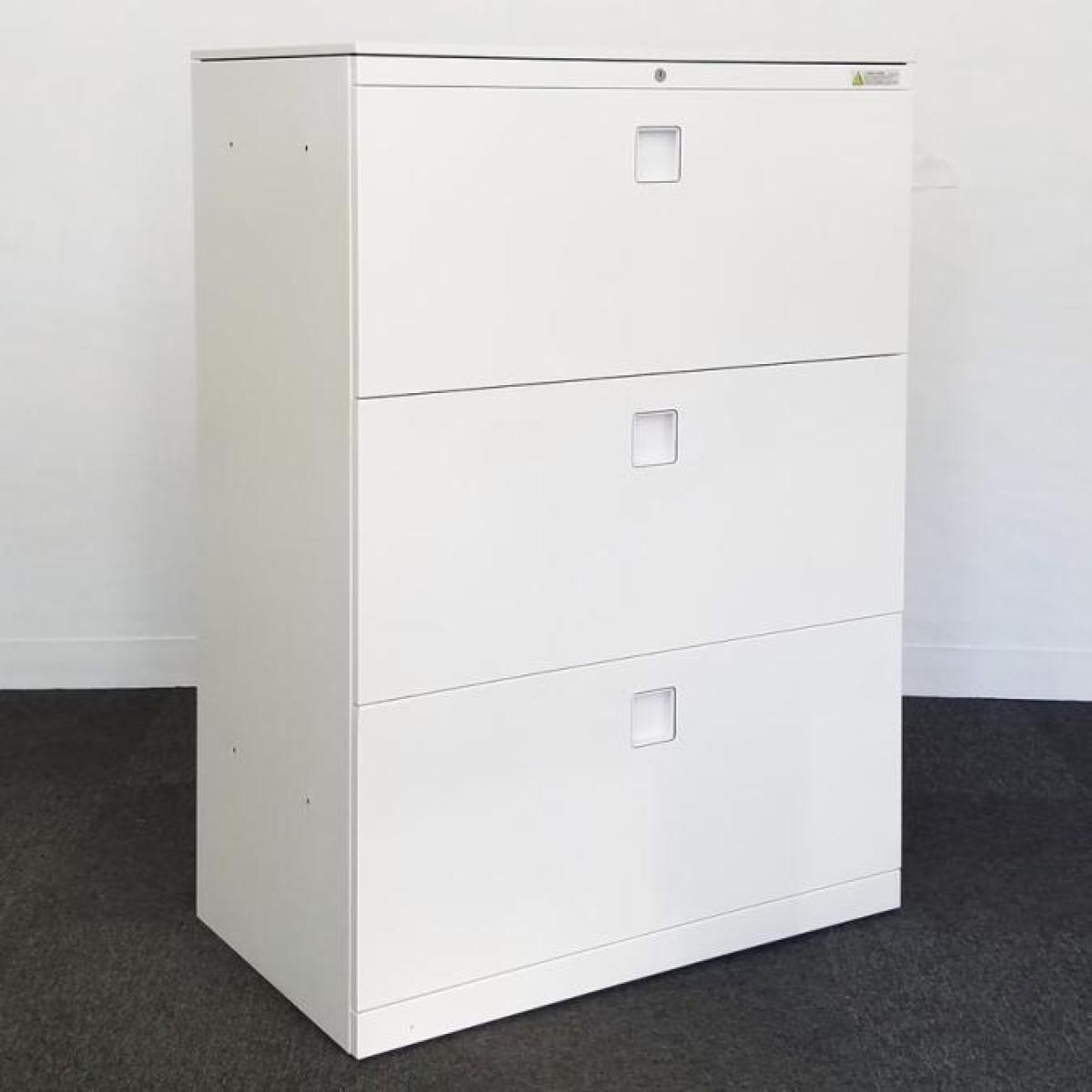 【オフィスの必需品!大容量の三段キャビネット!】■オカムラ(okamura)製 レクトラインシリーズ 3段ラテラル ローキャビネット ■ベース付 ■シリンダー錠 ■ホワイト 【弊社使用欄:A01037187】
