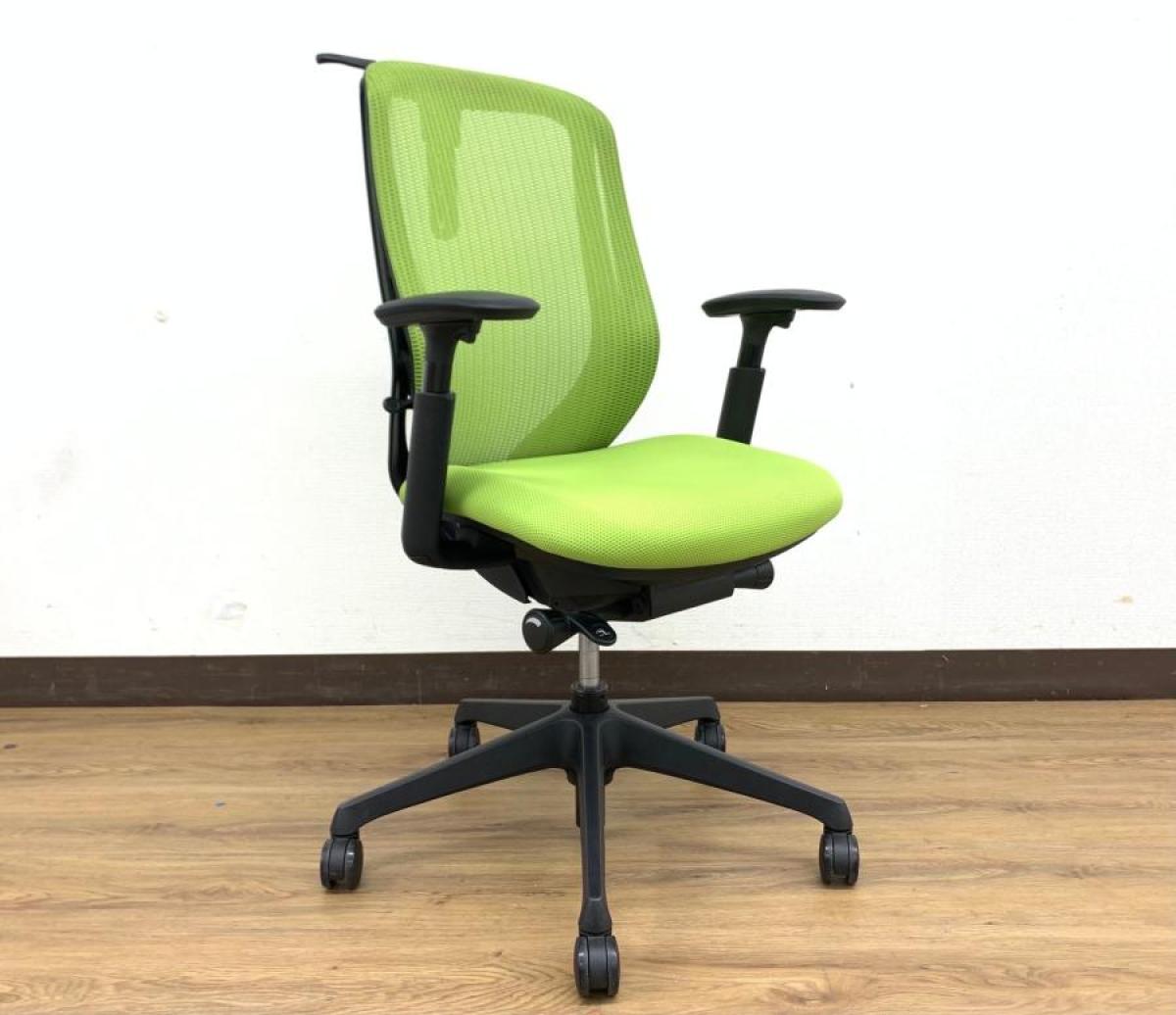 【2022年製!】前傾チルト機能付き!オカムラ製品で最も人気を集める高機能メッシュチェア! ■オカムラ/シルフィ(Sylphy)/ライムグリーン 肘付き ハイバック 背面メッシュ ■可動肘 ■ハンガー付き- 立川・八王子店