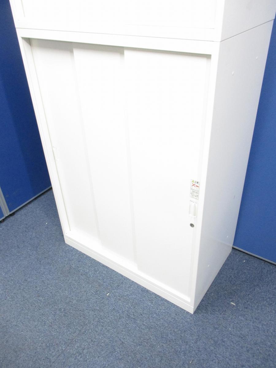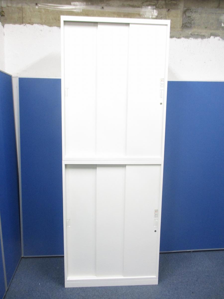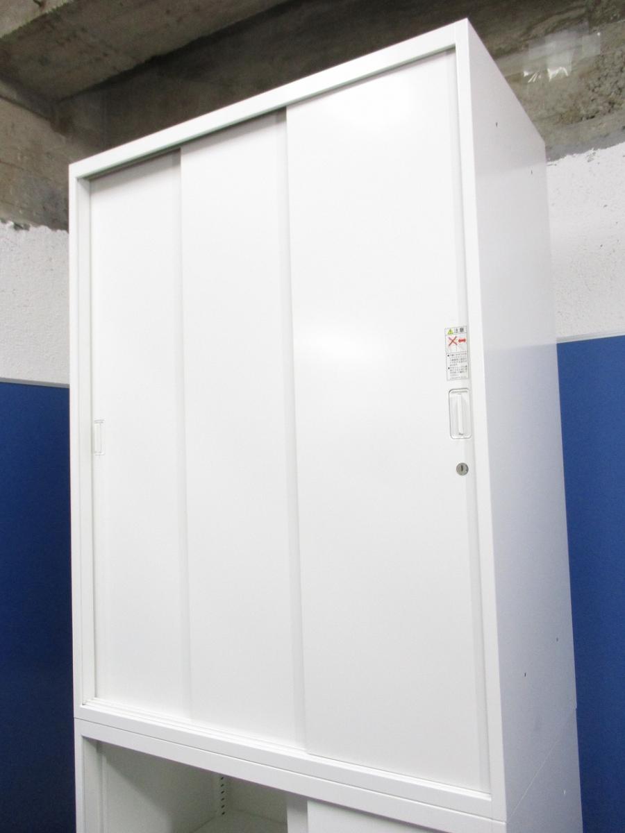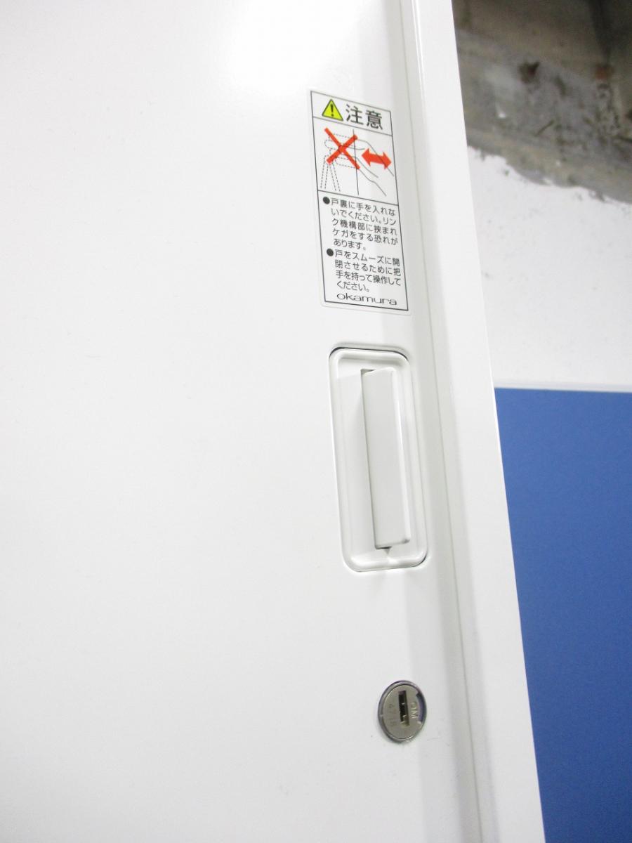 【関西倉庫在庫品】■オカムラ(okamura)製 レクトラインシリーズ 3枚戸タイプ 引き違い書庫セット ハイキャビネット W800mm×D450mm ■色:ホワイト ■シリンダー錠【スライド引き戸だから開閉スペースに困らない!】- 新大阪店
