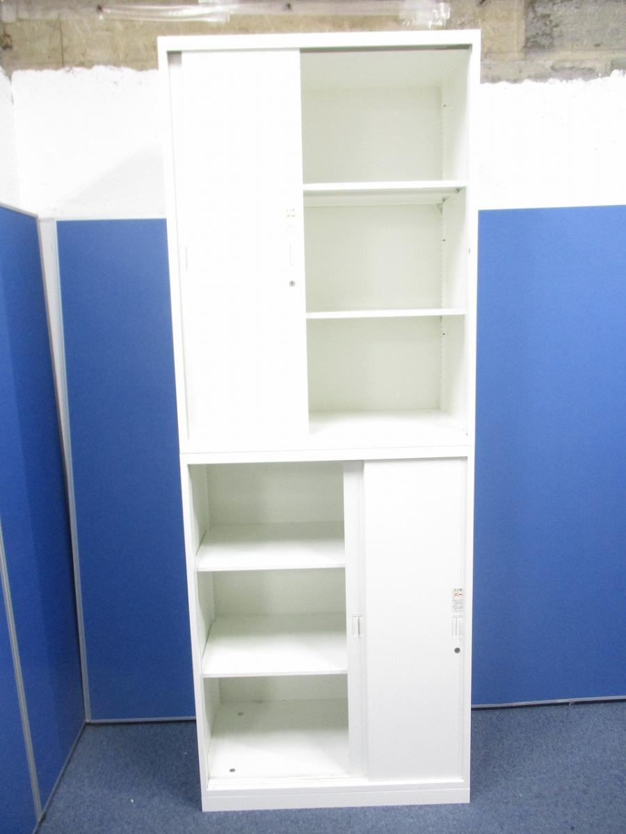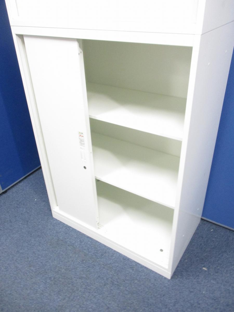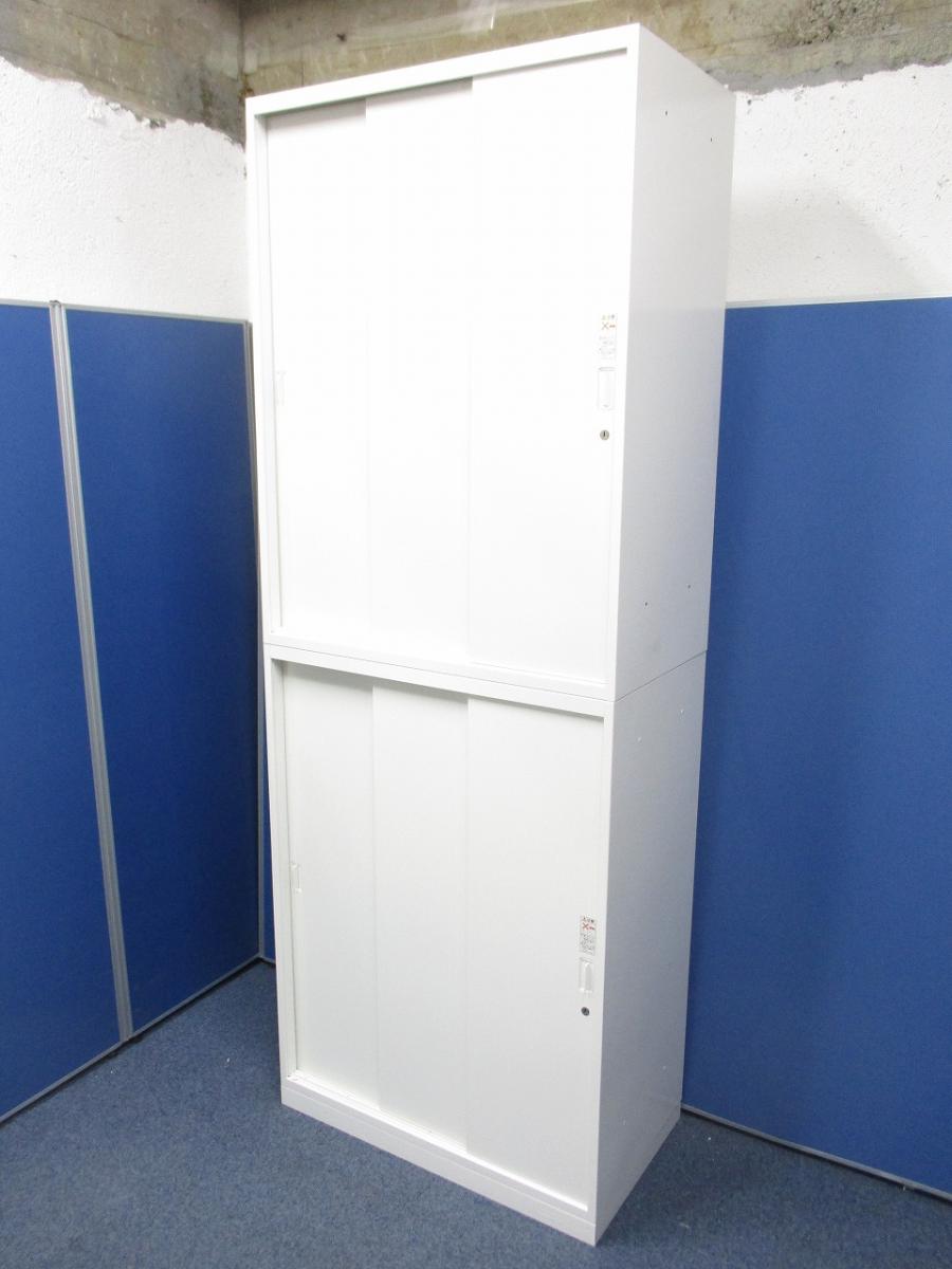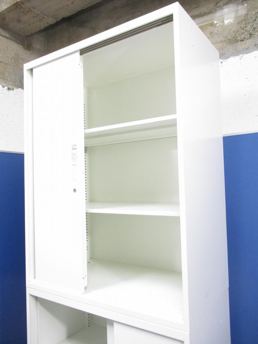 【関西倉庫在庫品】■オカムラ(okamura)製 レクトラインシリーズ 3枚戸タイプ 引き違い書庫セット ハイキャビネット W800mm×D450mm ■色:ホワイト ■シリンダー錠【スライド引き戸だから開閉スペースに困らない!】- 新大阪店