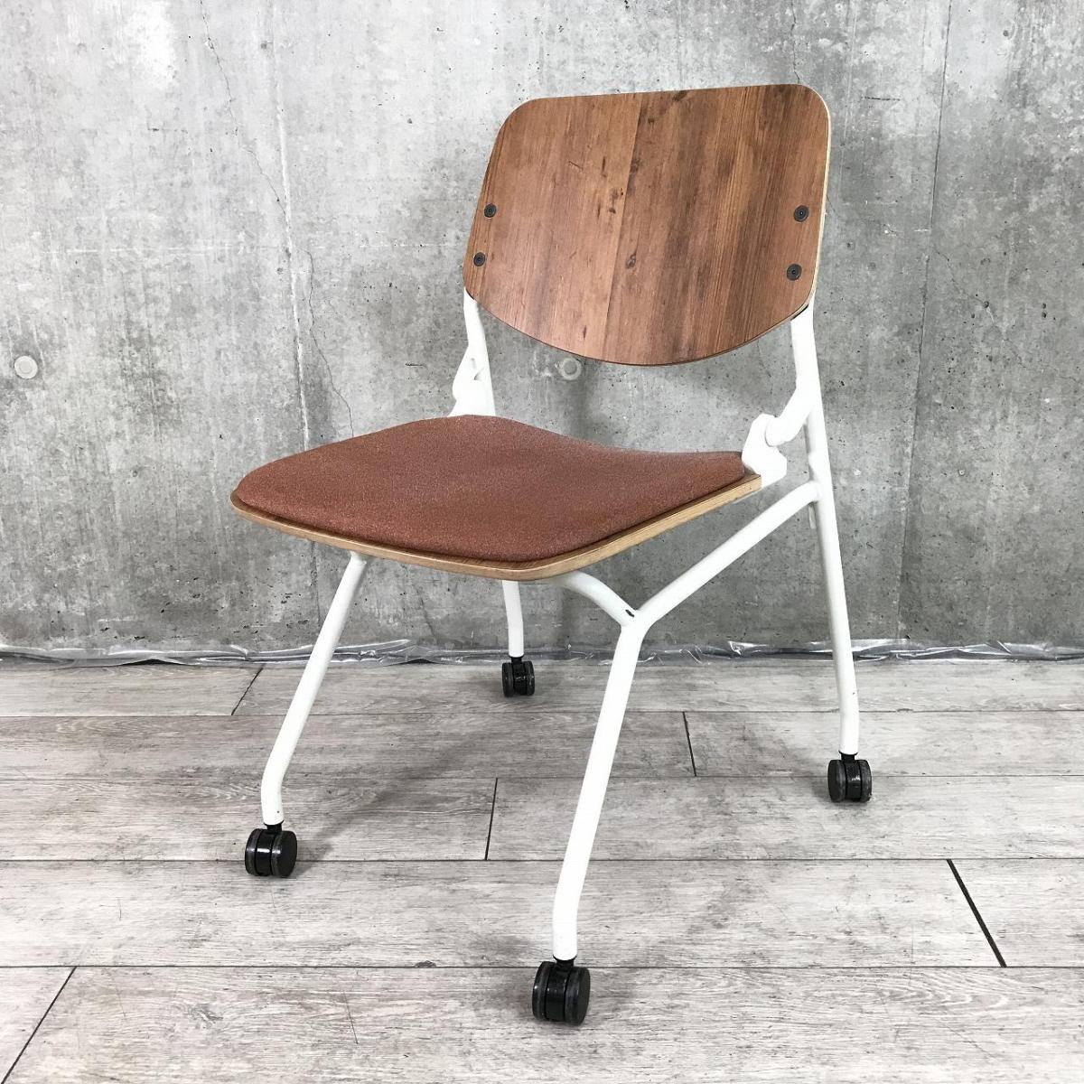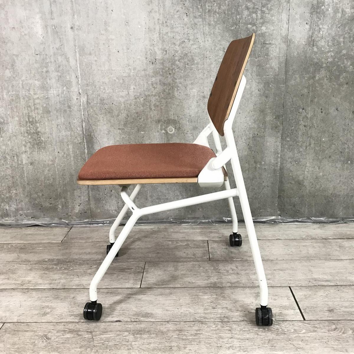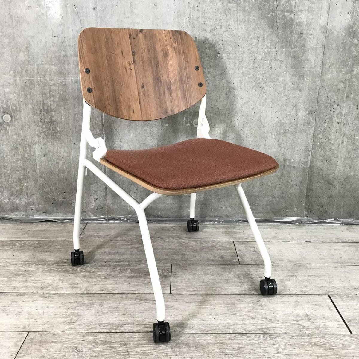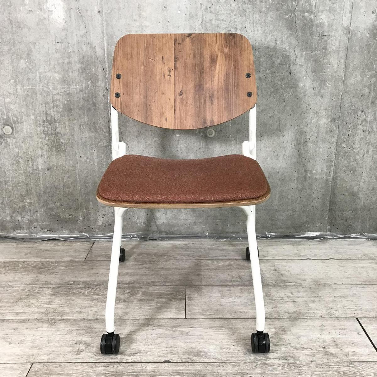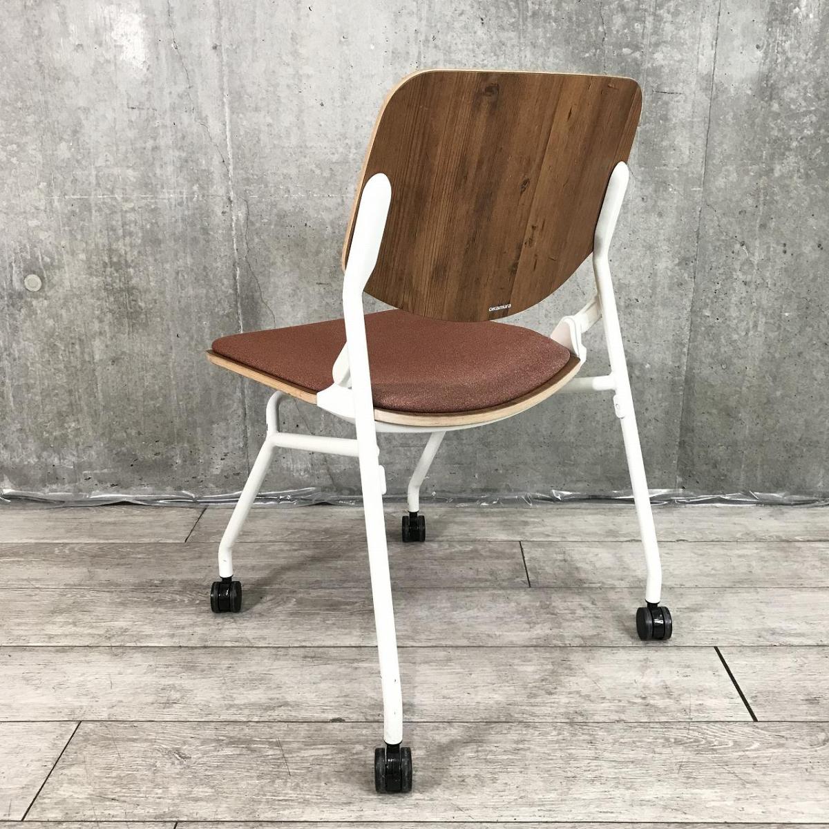 【美しい木目デザインで居心地の良い空間へ】■オカムラ(okamura)ライブス(Lives) ネスティングチェア 座パッド付き ■ラスティックパイン(木目ナチュラル)× 座面パッド:テラコッタ 【キャスター付きで移動がスムーズ!】- つくば店