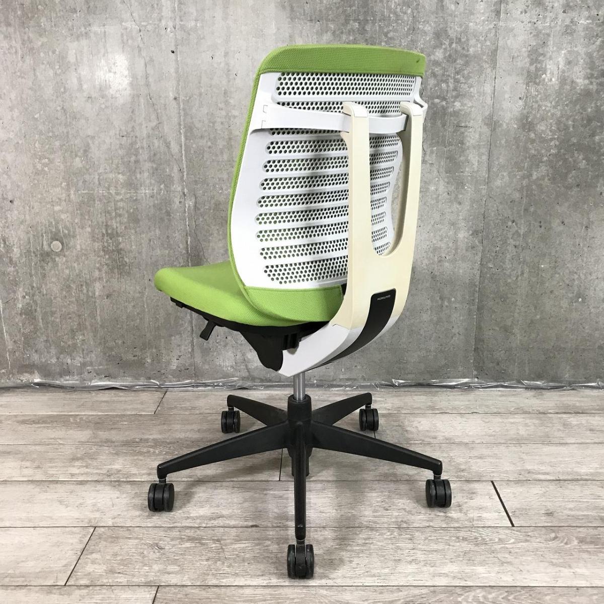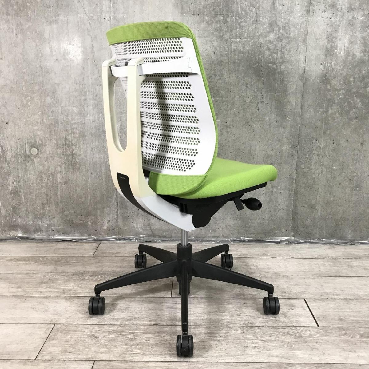 【高機能で快適・座れば納得のワーキングチェア!背面構造が体にフィット!】■コクヨ(KOKUYO) ベルガー(BELGER) 肘無し ローバック クッションタイプ ■イエローグリーン ×ホワイトシェル ※日焼けありサーキュラーバリューCO2削減量の算出について