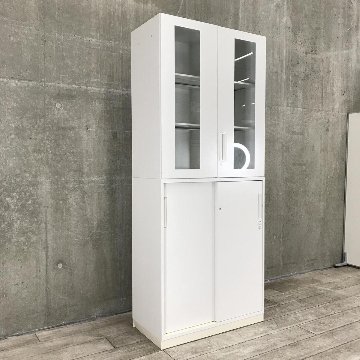 【中身を確認できる!人気のガラス書庫入荷!】■コクヨ エディアシリーズ 上:ガラス両開き + 下:引戸書庫セット ホワイト【KOKUYO EDIA】【上下書庫セット】【在庫入替セール品!】- 川崎店