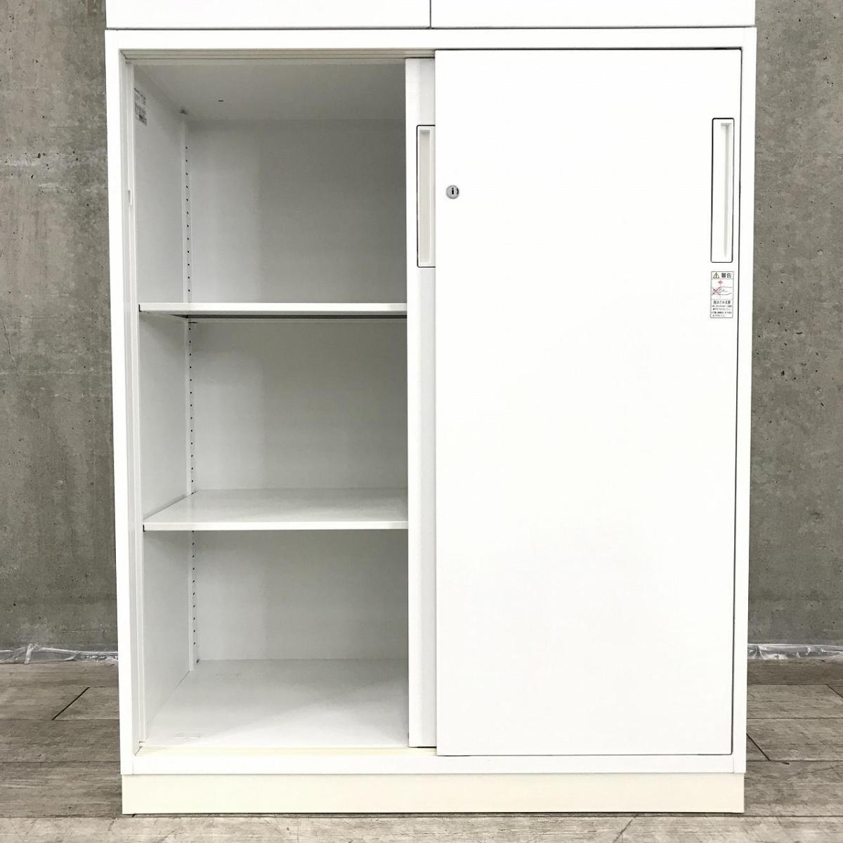 【オフィスの書類をまとめて整理!引き違いと引き出し式の書庫セット!】■コクヨ(KOKUYO)製 エディア(EDIA) 引き違い+3段ラテラル 上下書庫セット 2枚扉 H2150㎜ ■シリンダー錠 ■ホワイト