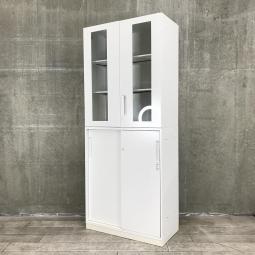 上段はガラス両開き書庫で、外から収納物が確認できますので、よく使う書類の出し入れに便利!