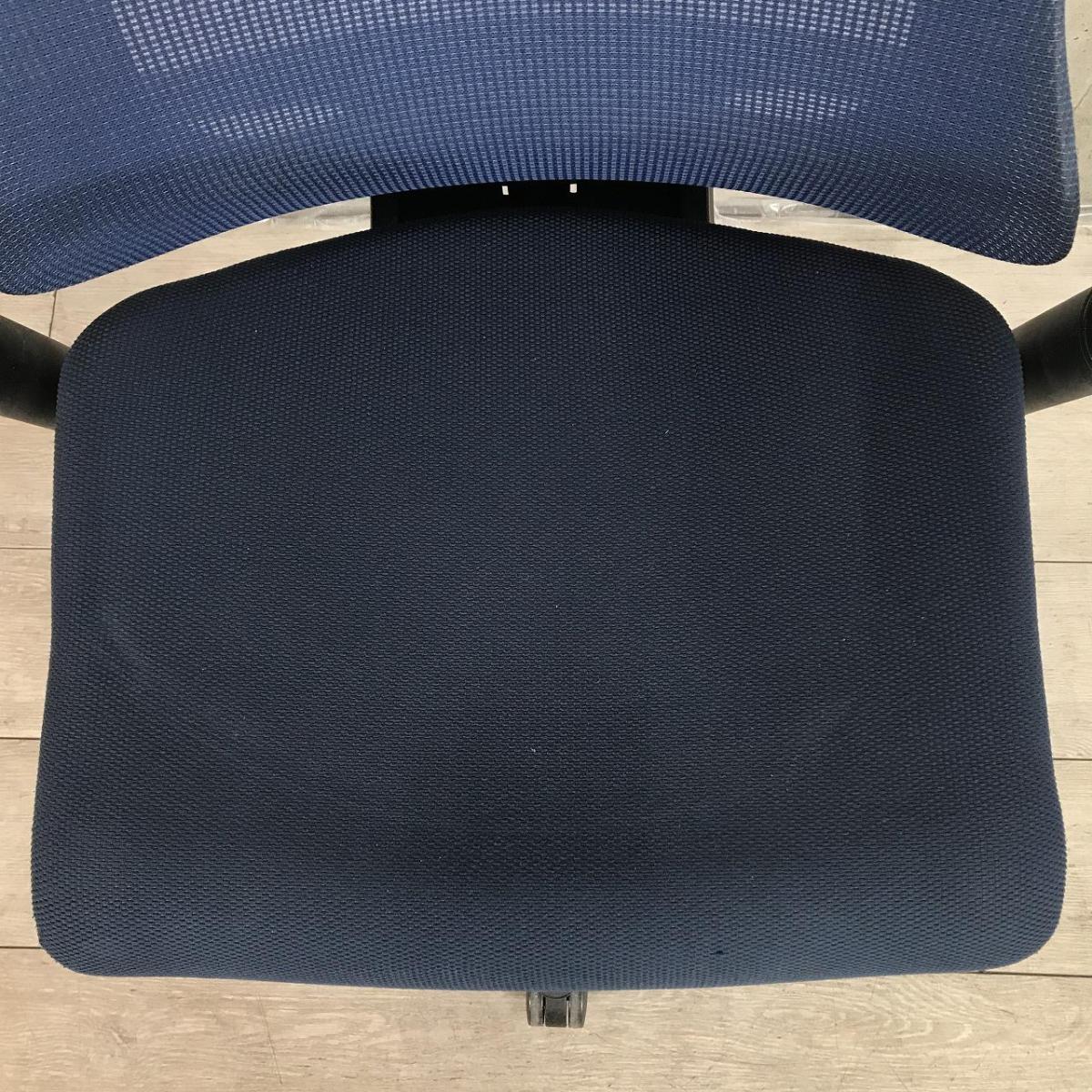 【姿勢の変化にフレキシブルに対応!スタイリッシュで座り心地も抜群な高機能チェア!】■イトーキ(ITOKI)製 エフ(f)チェア 肘付き ハイバック 背面メッシュ ■可動肘 ■ネイビーブルー ×ブラックシェル【2510】弊社使用欄【A01040263】