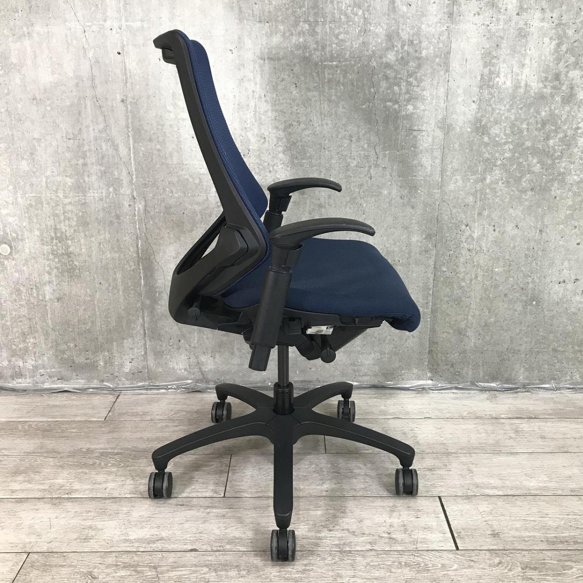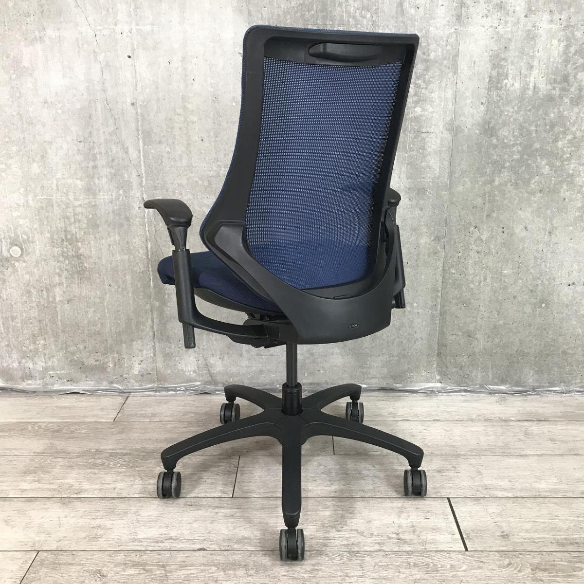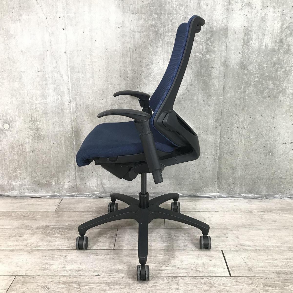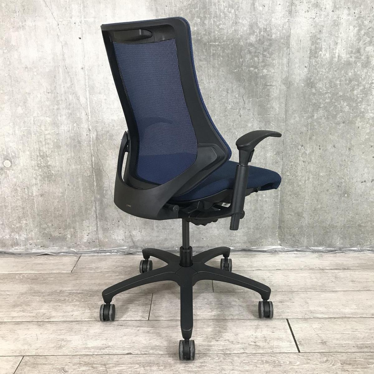 【最先端のデザインに快適な座り心地!】■イトーキ製 エフチェア 可動肘付 ネイビーブルー ■三次元フォルムが腰にフィット!【在庫入替セール品(本在庫限定価格)】