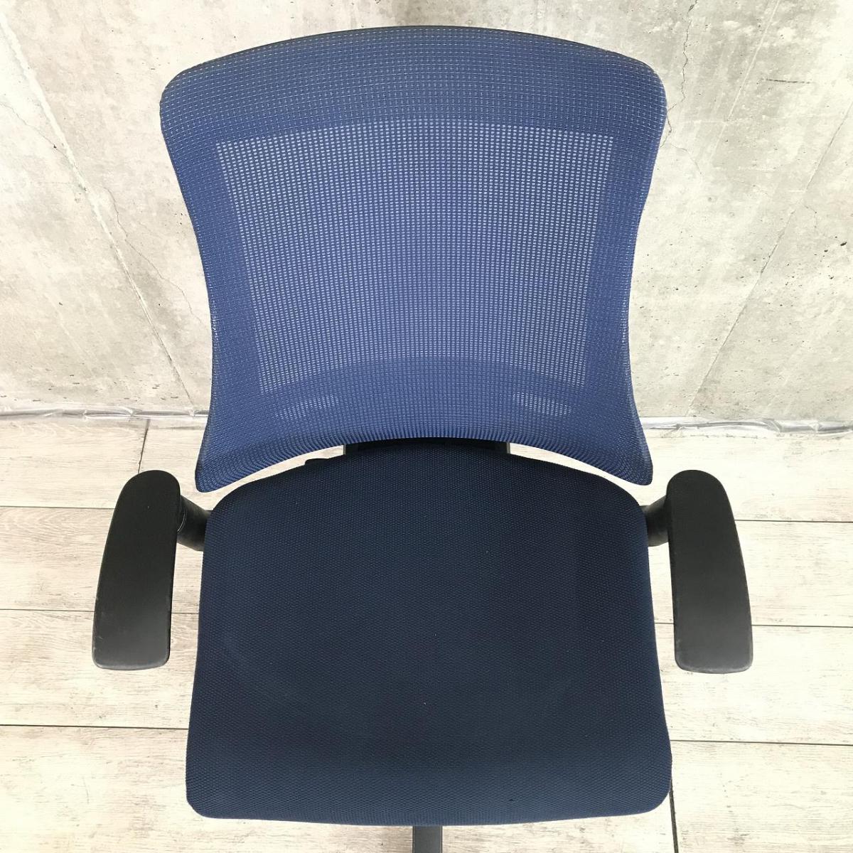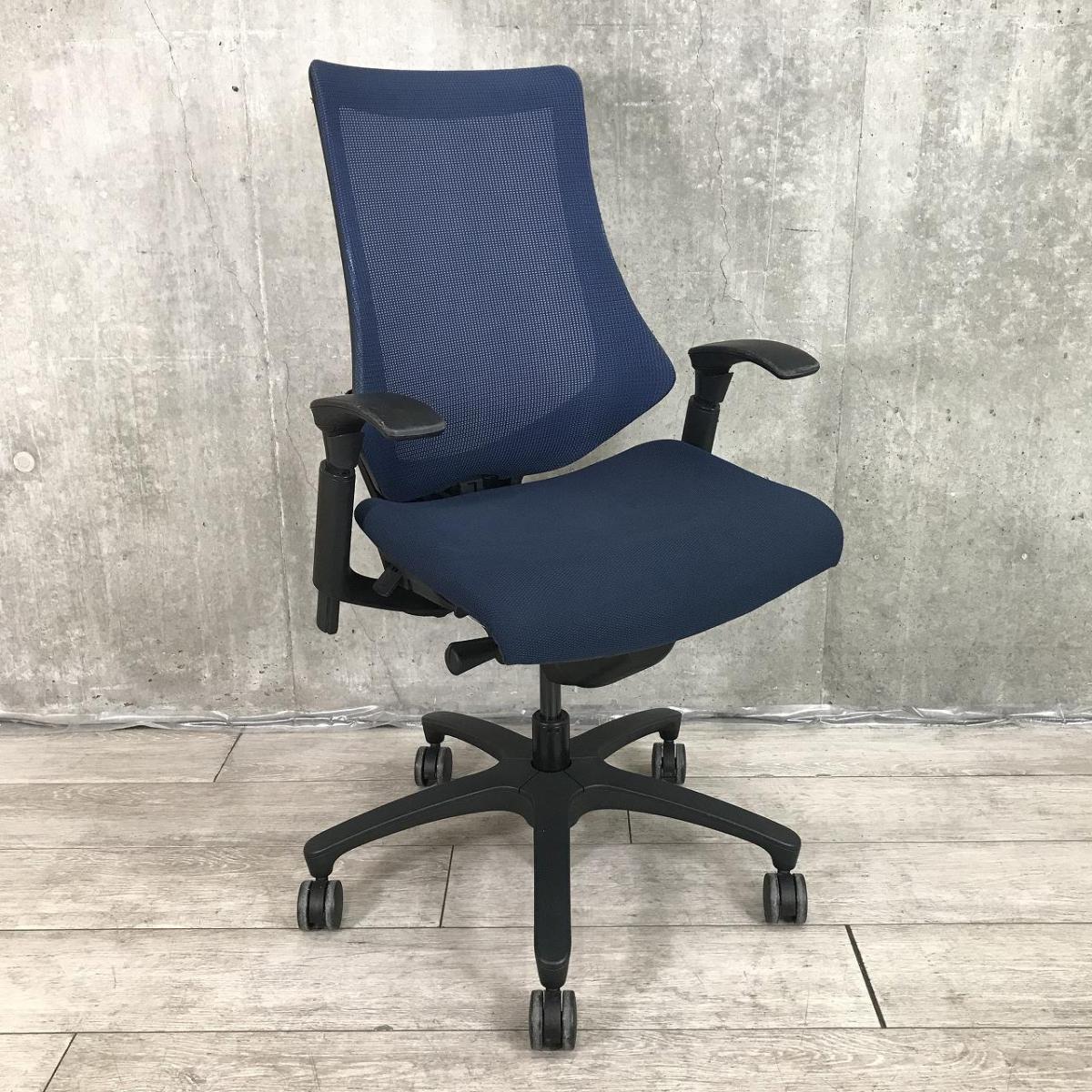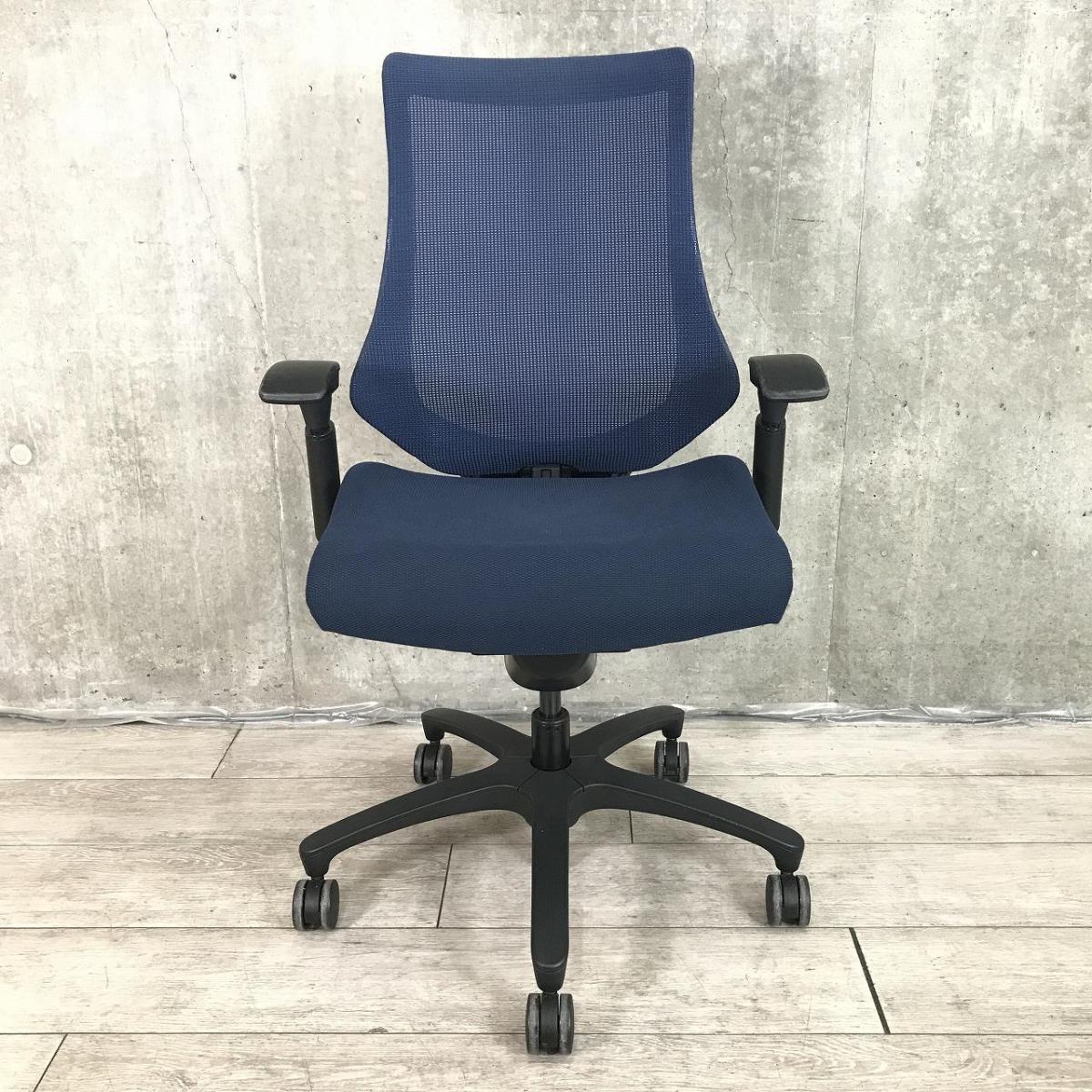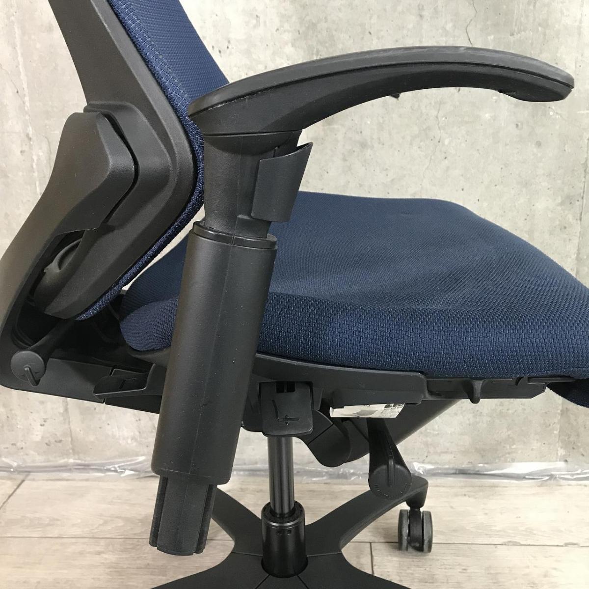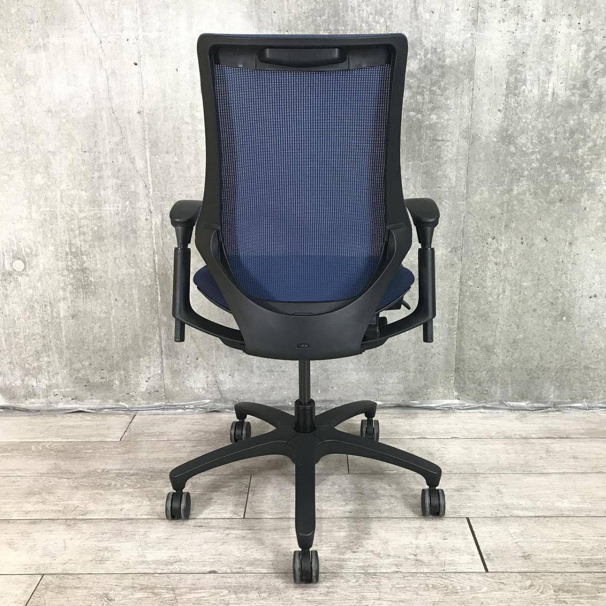 【最先端のデザインに快適な座り心地!】■イトーキ製 エフチェア 可動肘付 ネイビーブルー ■三次元フォルムが腰にフィット!【在庫入替セール品(本在庫限定価格)】