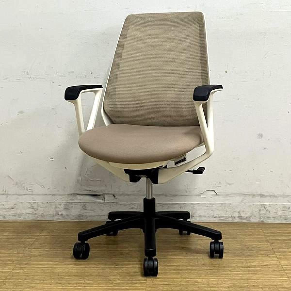 【在庫入替セール】【ロット入荷】イトーキ ノナ プレーンメッシュ 肘付きチェア サンドイエロー(ベージュ)×ホワイトフレーム コンパクトなサイズ感で女性におすすめ- 名古屋千種店
