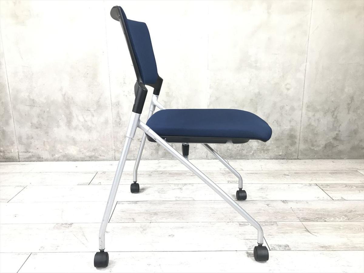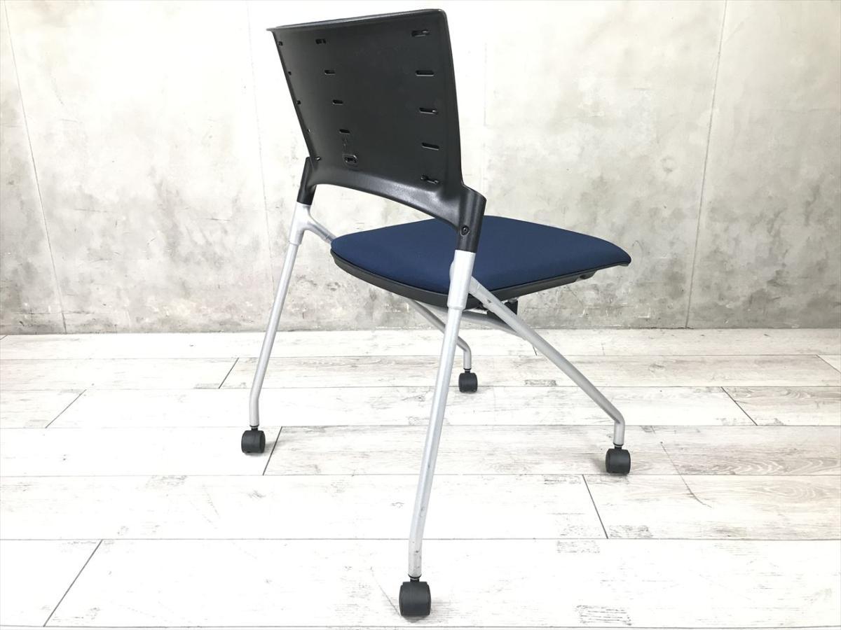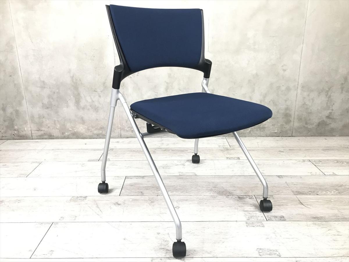 【セミナーや会議用にオススメ!平行ネスティングで省スペース化!】■イトーキ製 マノス ネスティングチェア ■背パッド付 キャスター付き ■ネイビーブルー オフィスバスターズ東大阪店 ロット在庫- 東大阪店