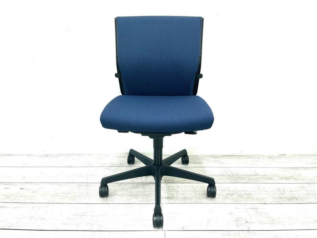 【在庫入替セール品】長時間のデスクワークもランバーが快適にサポート!】■okamura(オカムラ)製 エスクードチェア ローバック ■肘無 ■色:ダークブルー【弊社使用欄:A01030477】
