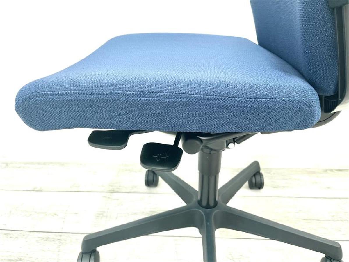 【長時間のデスクワークもランバーが快適にサポート!】■okamura(オカムラ)製 エスクードチェア ローバック 色:ダークブルー 肘無し
