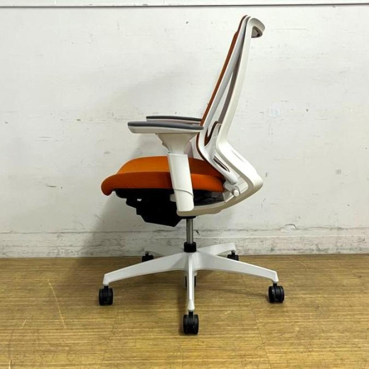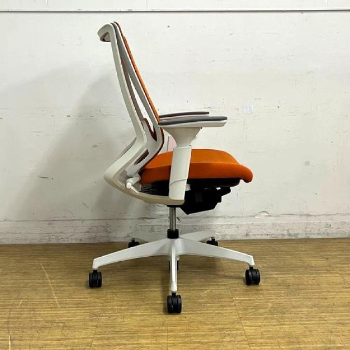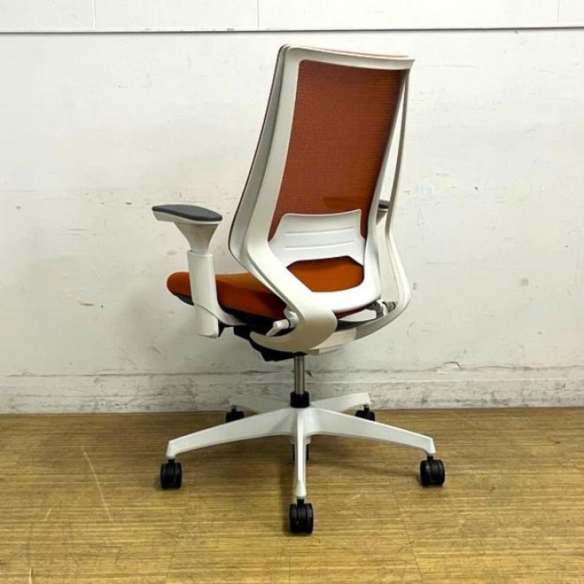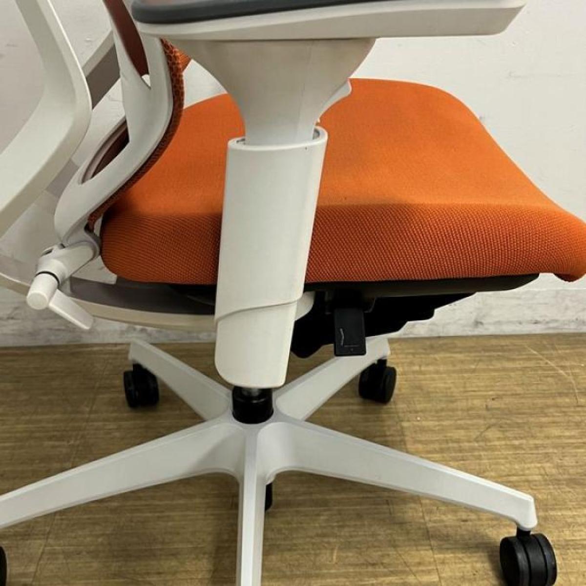 【二重フレーム構造がもたらすしなやかで美しい背もたれ機能!簡易操作で自分に合った姿勢をサポート!】■コクヨ(KOKUYO)製 デュオラ(Duora) 肘付ハイバック ■タンジェリン×ホワイトシェル ■背面メッシュ ■可動肘