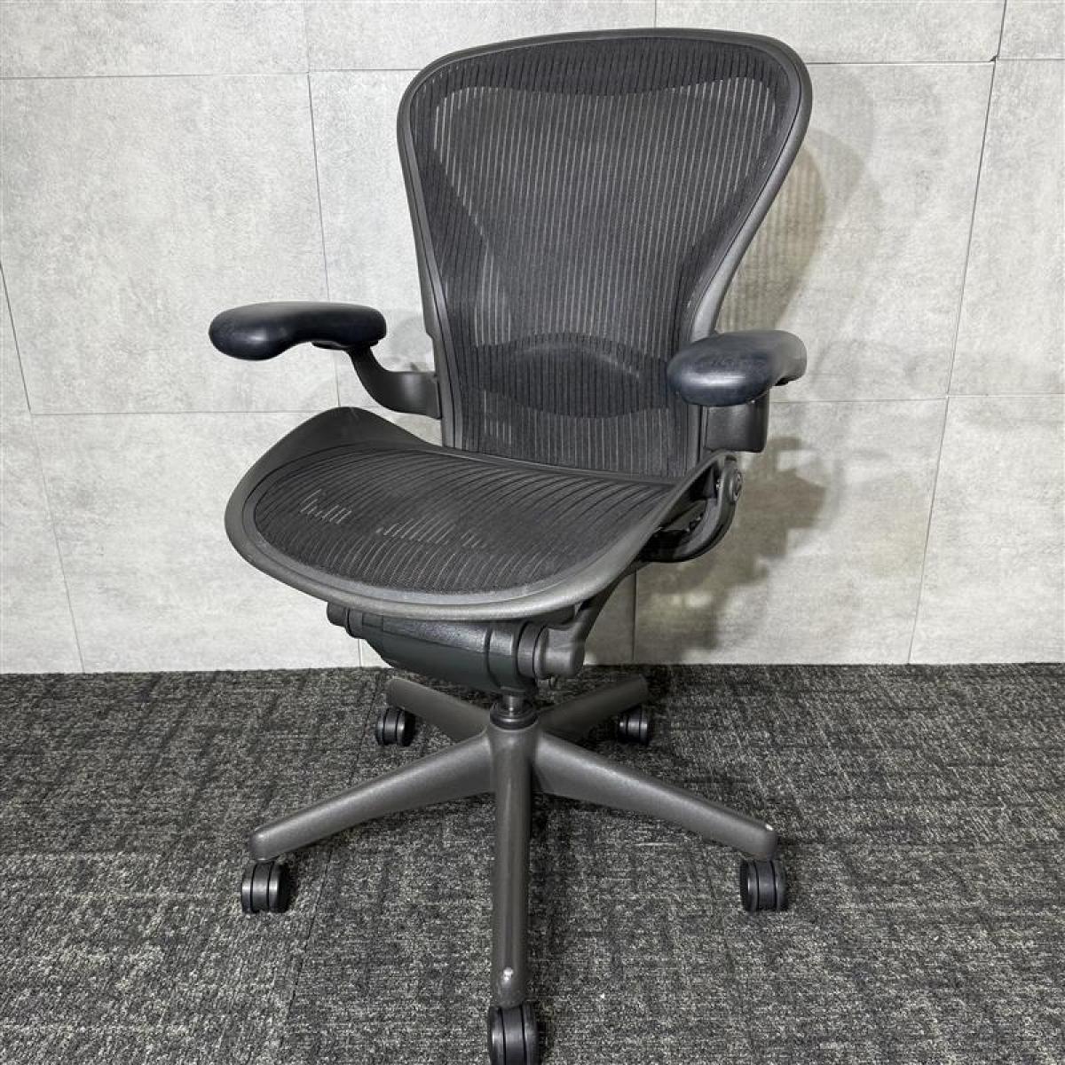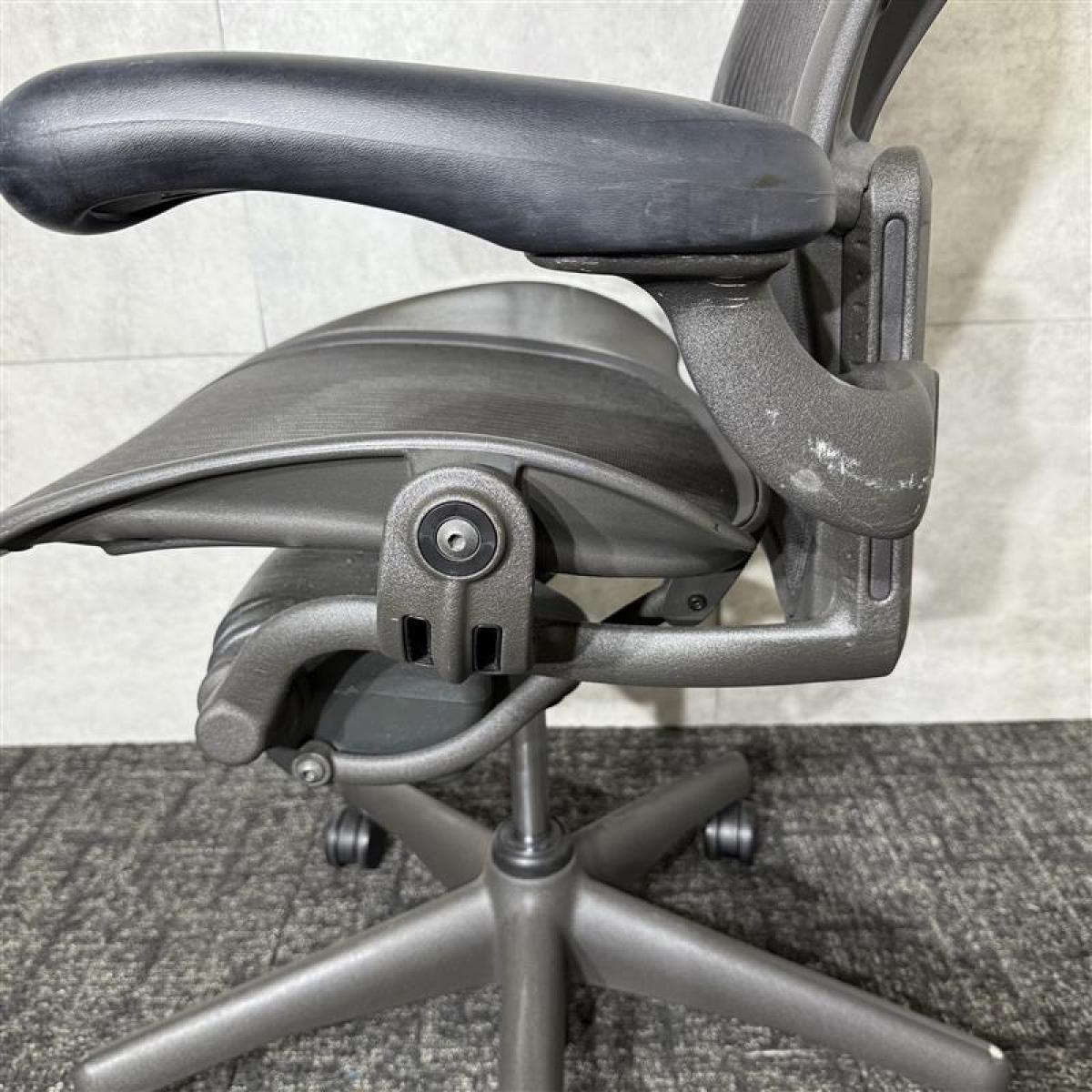 【★状態イマイチのためお安く!】■ハーマンミラー製 アーロンチェア Bサイズ 固定肘 ※キズあり・ランバーサポート無・昇降ガス圧弱めのためお安く!【訳あり特価品】