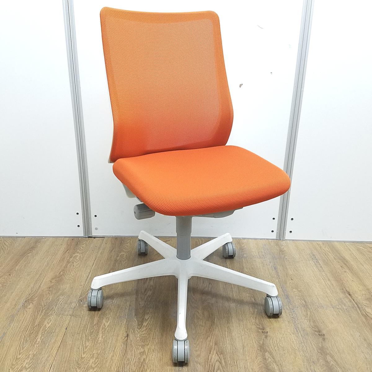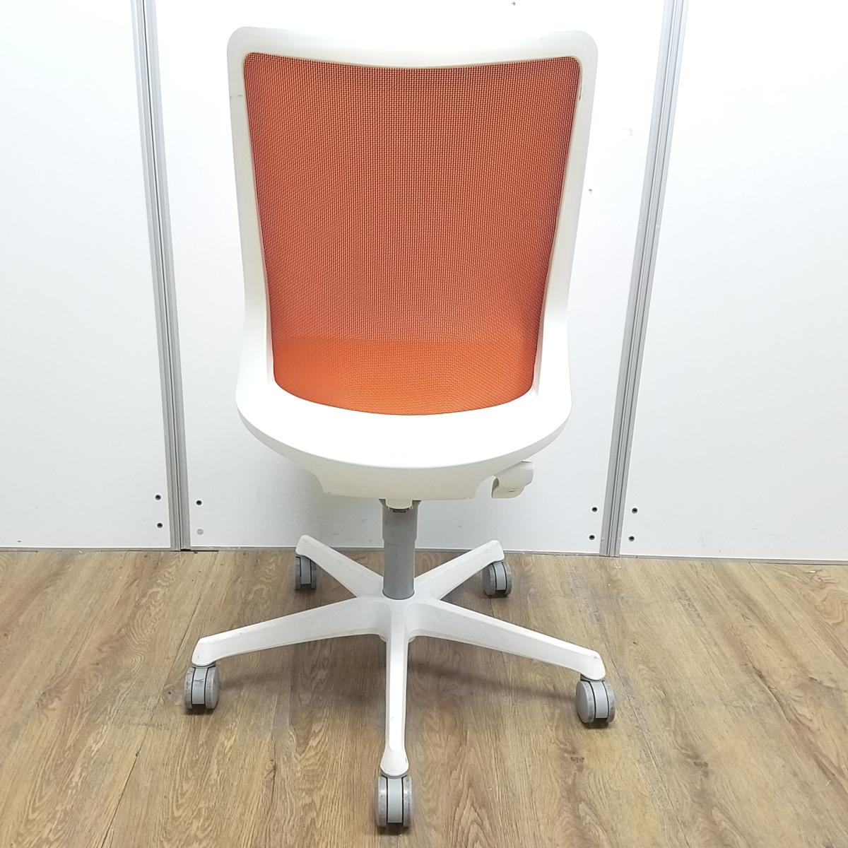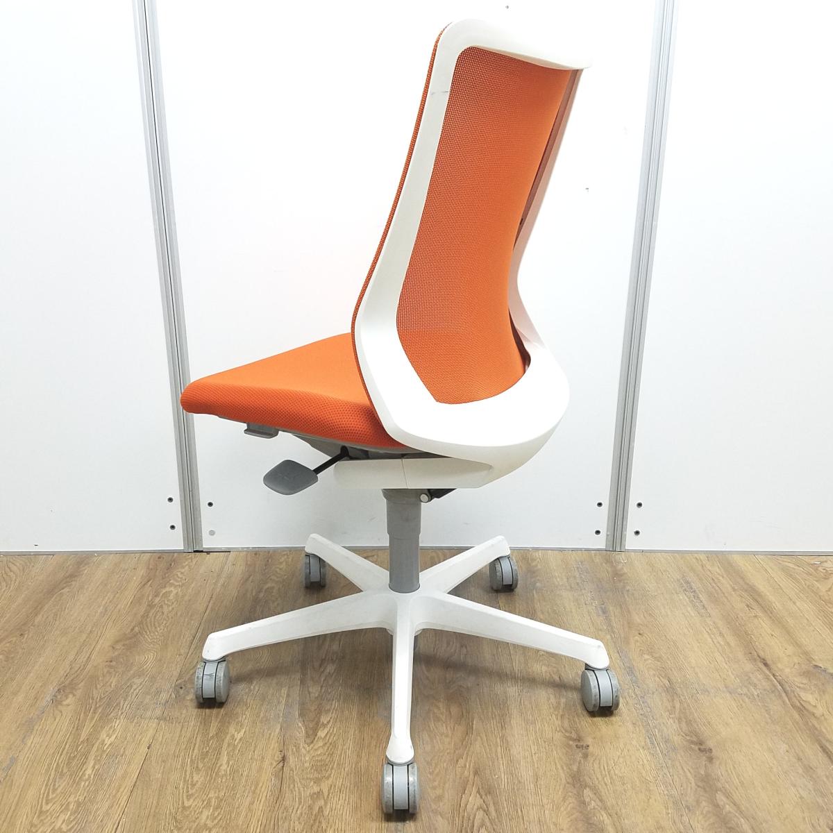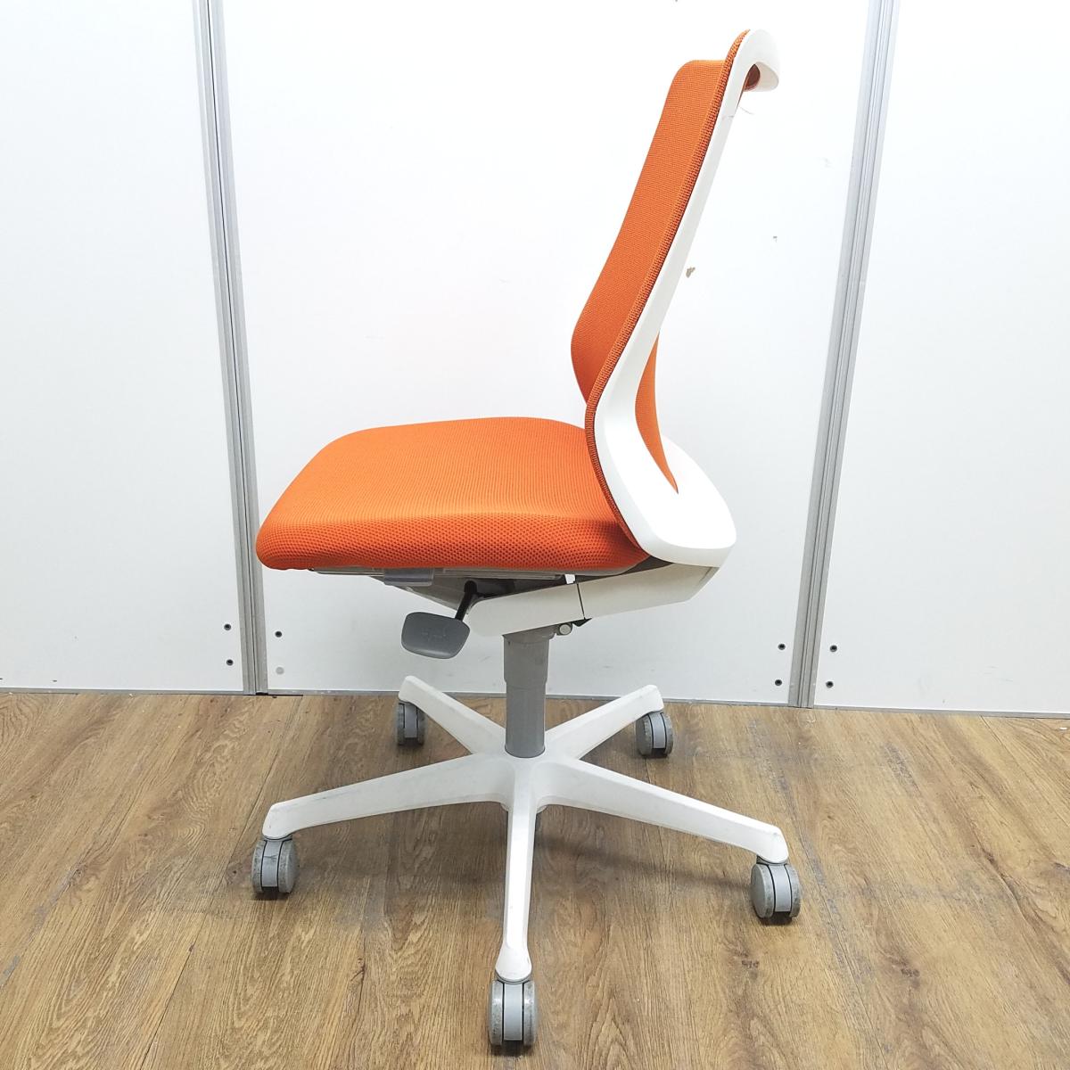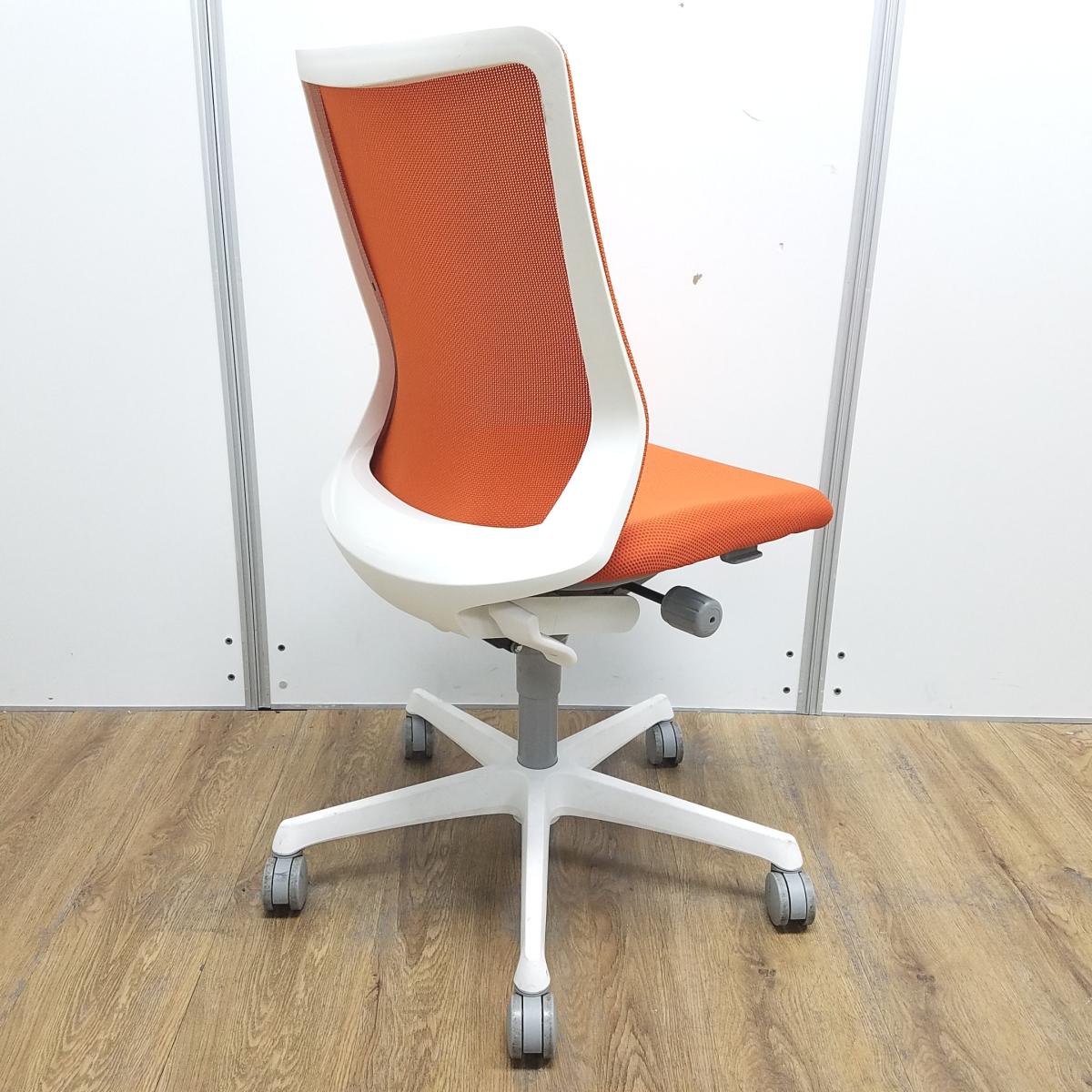 オカムラ製 フルーエント(Fluent) オレンジレッド ホワイトフレーム 肘無し ローバック 背面メッシュ 背中を立体的に包み込む! シルフィの座り心地を低コストで再現! 肘無しローバックチェア!!サーキュラーバリューCO2削減量の算出について